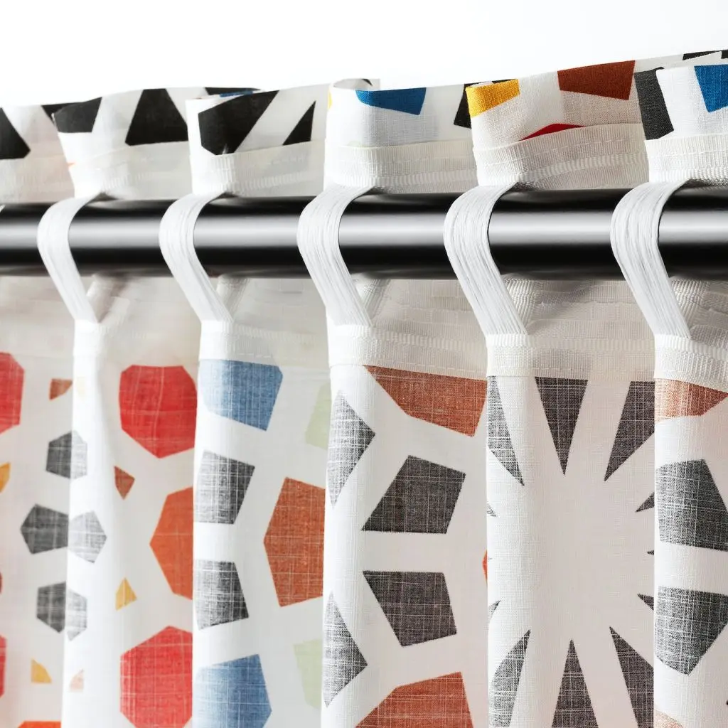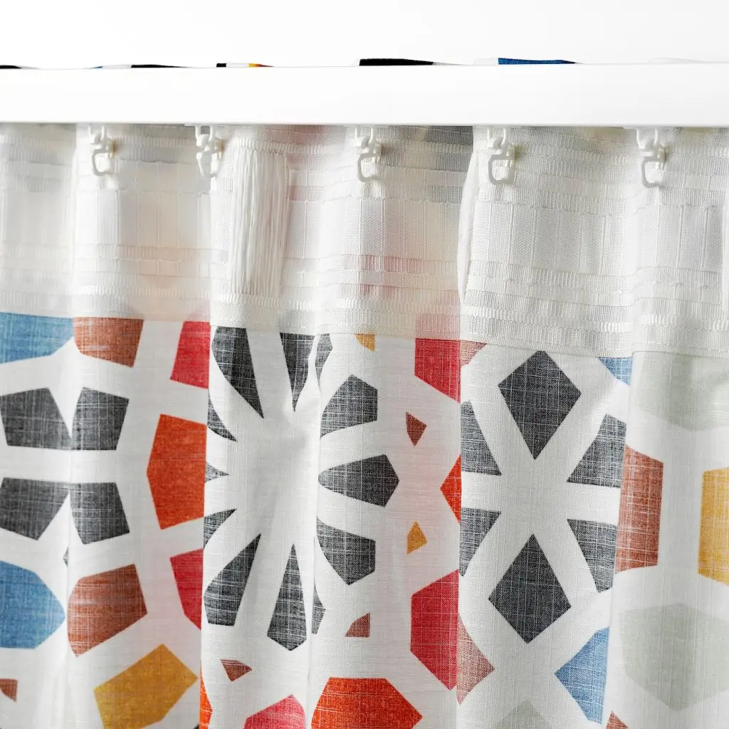 Тесьма по верхнему краю позволяет делать складки, используя гардинные крючки РИКТИГ.