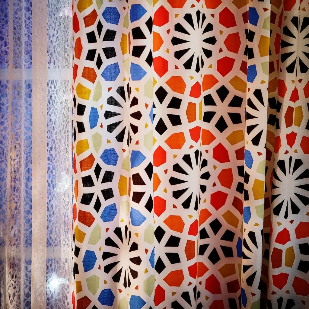 Эти яркие гардины сделают атмосферу в комнате особенно уютной и защитят от посторонних взглядов. Орнамент вдохновлен современной марокканской плиткой, как и дизайн других текстильных товаров серии ХЕМБЬЮДЕН.