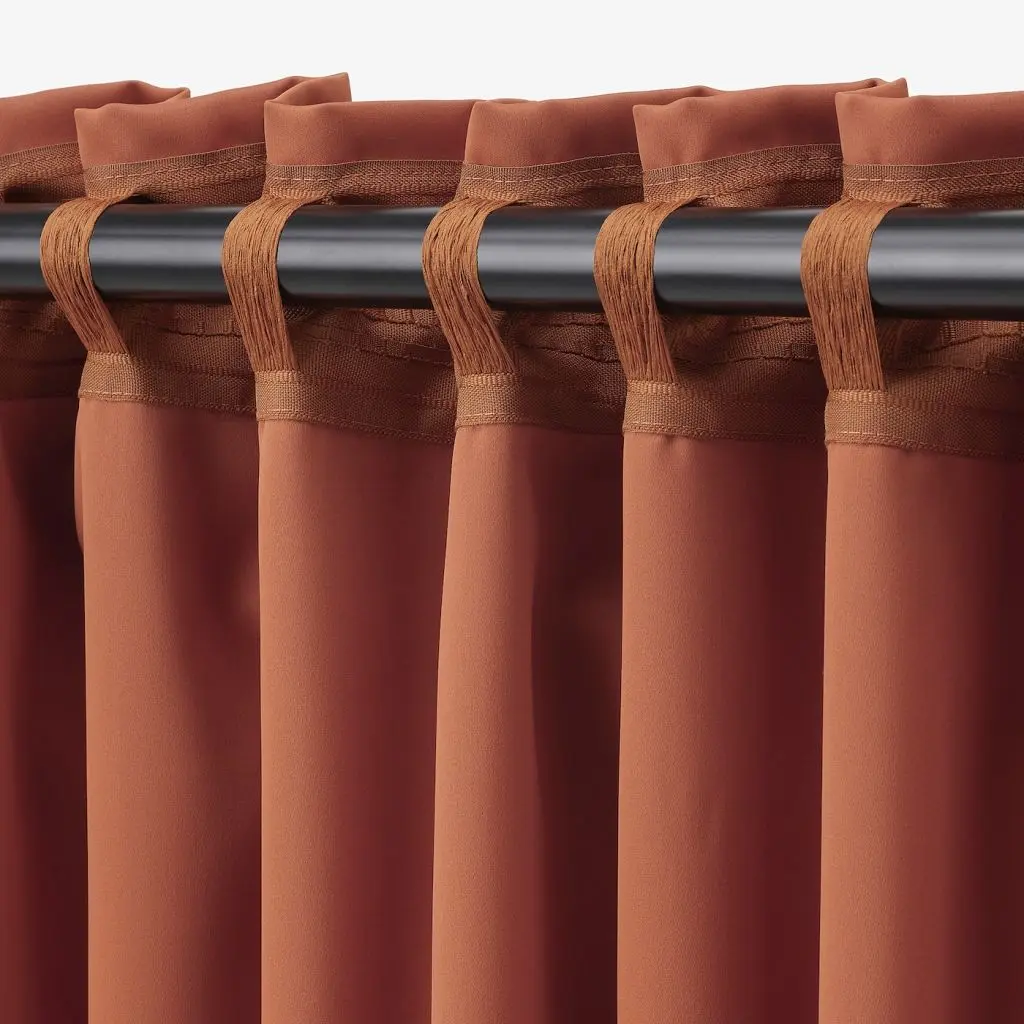 На тесьме по верхнему краю гардин есть подготовленные петли, позволяющие повесить гардины на гардинный карниз.