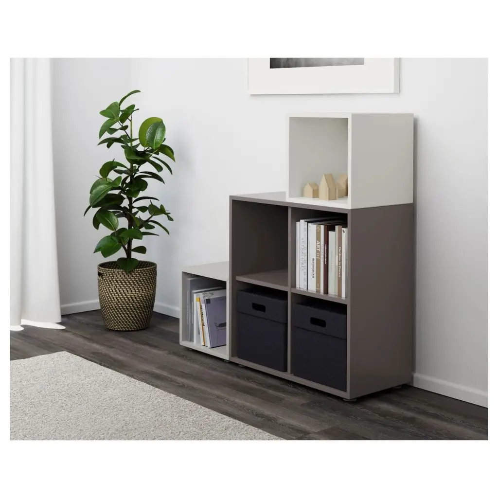 Ассиметричное расположение секций подчеркнет индивидуальность решения для хранения.Сборка очень проста благодаря штифтам, которые вставляются в подготовленные отверстия.Регулируемые ножки позволяют скорректировать неровности пола.Эту мебель необходимо крепить к стене с помощью прилагаемого стенного крепежа.Для разных стен требуются различные крепежные приспособления. Подберите подходящие для ваших стен шурупы, дюбели, саморезы и т. п. (не прилагаются).Дизайнер