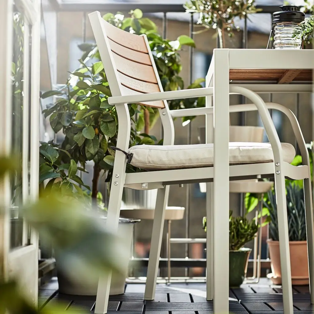 Столешница изготовлена из эвкалиптовых реек с естественными вариациями цвета и фактуры натурального дерева.Каркас из алюминия – прочный, легкий, простой в уходе материал, устойчивый к появлению ржавчины.Легко поддерживать в чистоте – достаточно протереть влажной тканью.Мебель обработана полупрозрачной морилкой в несколько слоев. Это повышает ее прочность и подчеркивает выразительность натуральной фактуры дерева.Рекомендовано для использования на улице.На 2 человек.Дизайнер