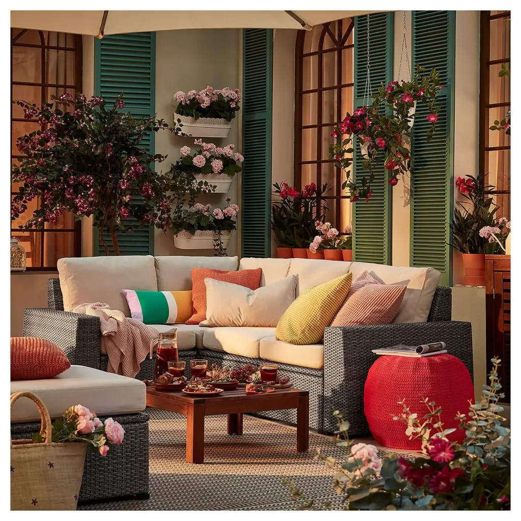 МебельМодульный угл 3-мест диван, садовыйЧтобы продлить срок службы садовой мебели, ее необходимо поддерживать в чистоте и без необходимости не оставлять на открытом воздухе.Уход: используйте мягкий мыльный раствор.Обслуживание: не требует обслуживания.Мебель лучше хранить в сухом прохладном помещении. При хранении на улице используйте водостойкий чехол. После дождя и снегопада рекомендуется удалить влагу и снег с плоских поверхностей. Следует обеспечить циркуляцию воздуха.