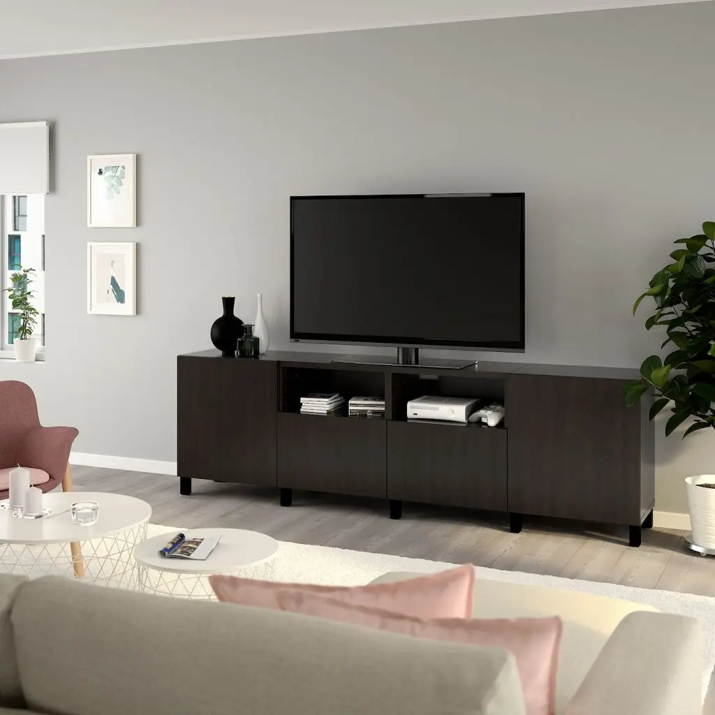Благодаря интегрированному нажимному механизму ящики открываются легким нажатием.Благодаря нескольким отверстиям на задней панели тумбы под ТВ провода от телевизора и других устройств всегда будут под рукой, но не на виду.Два ящика обеспечат порядок в хранении пультов, игровых приставок и других аксессуаров для ТВ.Ножки придают комбинации БЕСТО более легкий вид, поднимая модули на полом. Кроме того, это упрощает уборку.Специальное отверстие в верхней панели обеспечит удобное и компактное размещение проводов.Эту мебель необходимо крепить к стене с помощью прилагаемого стенного крепежа.Макс. нагрузка на верхнюю панель этой тумбы под ТВ: 50 кг.Для разных стен требуются различные крепежные приспособления. Подберите подходящие для ваших стен шурупы, дюбели, саморезы и т. п. (не прилагаются).Внутренние элементы для организации хранения в модулях БЕСТО продаются отдельно.Если вы выберете функцию плавного закрывания, рекомендуем дополнить фасады ручками, чтобы открывать ящики/шкафы было удобнее.Дизайнер