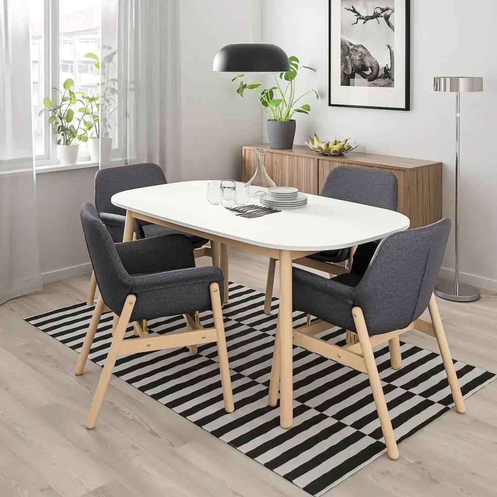 К бархатистой матовой поверхности этого обеденного стола так и тянет прикоснуться. На ней не видны отпечатки пальцев, поэтому можете смело попробовать! В комбинации со стулом ВЕДБУ будет всегда смотреться актуально.