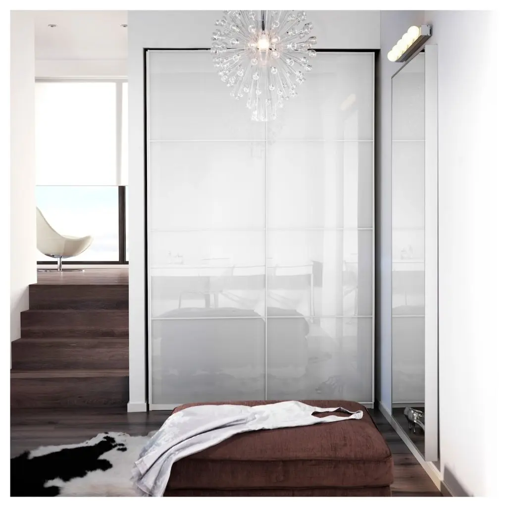 Бесплатно 10 лет гарантии. Подробнее об условиях гарантии – в гарантийной брошюре.Раздвижные дверцы не требуют места при открывании.Обеспечивает плавное и бесшумное закрывание дверец.Чтобы обновить внешний вид гардероба, можно заменить другими панелями аналогичного размера из нашего ассортимента. Отличное решение вместо покупки новой мебели.Для раздвижных дверей не нужны ручки, что придает дизайну гардероба лаконичный облик, позволяя сочетать его с мебелью в разных стилях.Подходит для гардеробов ПАКС.Будьте осторожны при обращении со стеклом! Из-за поврежденных краев и царапин на поверхности стекло может внезапно треснуть и/или разбиться. Избегайте ударов сбоку, там стекло наиболее уязвимо.Для сборки этой мебели требуются два человека.Требуемая минимальная высота потолка для сборки в горизонтальном положении – 244 см, в вертикальном – 242 см.Дизайнер