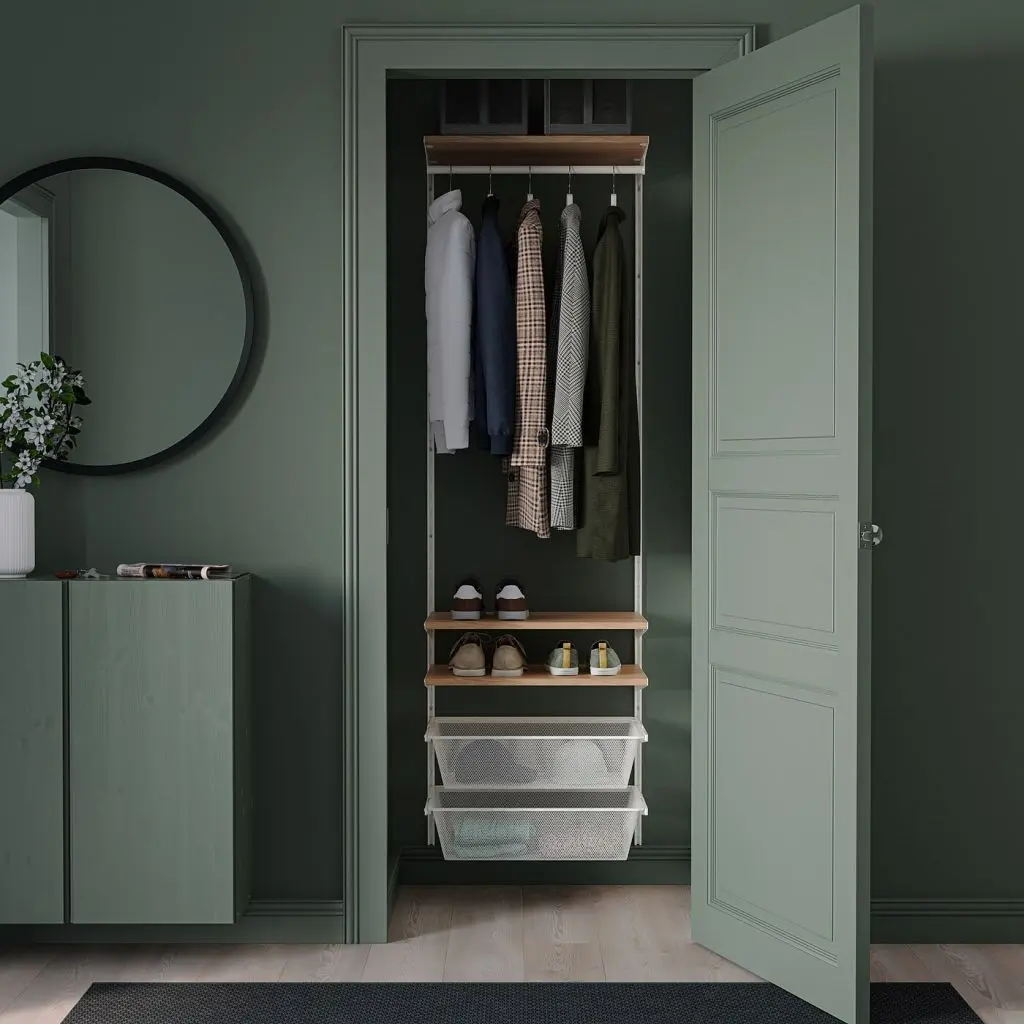 При необходимости эту комбинацию для хранения легко изменить или дополнить. Возможно, предлагаемая нами комбинация идеально подойдет для вашего интерьера, или вы можете создать решение для хранения самостоятельно.Внутренние элементы БОАКСЕЛЬ легко установить или снять, поэтому вы без труда реорганизуете пространство, измените или переместите решение при необходимости или по желанию.В сетчатую корзину БОАКСЕЛЬ 60 см можно положить 6 пар сложенных брюк или 10 футболок.На платяную штангу БОАКСЕЛЬ 60 см можно повесить примерно 20 рубашек на плечиках.Мебель необходимо крепить к стене.Различные материалы стен выдерживают разную нагрузку. Например, гипсокартон не может выдерживать вес, который могут выдержать стены из дерева, бетона или кирпича.Для разных стен требуются различные крепежные приспособления. Подберите подходящие для ваших стен шурупы, дюбели, саморезы и т. п. (не прилагаются).Если Вы не уверены, какой тип креплений использовать, обратитесь в специализированный магазин.Для сборки этой мебели требуются два человека.Дизайнер