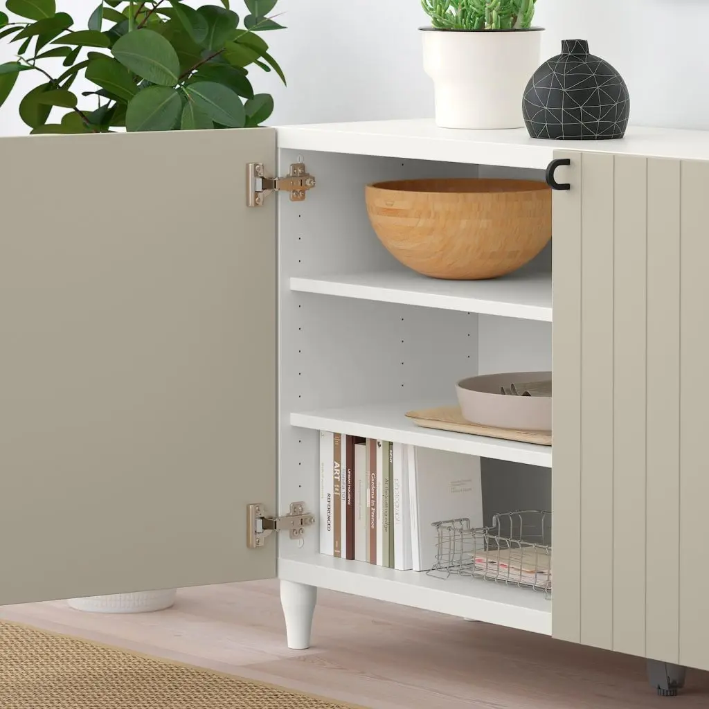 Дверцы открываются легким нажатием и закрываются плавно и бесшумно благодаря петлям с нажимным механизмом и функции плавного закрывания.Конструкция петель позволяет отрегулировать и выровнять дверцу по вертикали и по горизонтали. Съемные полки позволяют регулировать пространство.Регулируемые ножки обеспечивают устойчивость даже на неровном полу.Можно дополнить элементами внутреннего оснащения БЕСТО.Ручки продаются отдельно.Внутренние элементы для организации хранения в модулях БЕСТО продаются отдельно.Эту мебель необходимо крепить к стене с помощью прилагаемого стенного крепежа.Для разных стен требуются различные крепежные приспособления. Подберите подходящие для ваших стен шурупы, дюбели, саморезы и т. п. (не прилагаются).Если вы выберете функцию плавного закрывания, рекомендуем дополнить фасады ручками, чтобы открывать ящики/шкафы было удобнее.Дизайнер