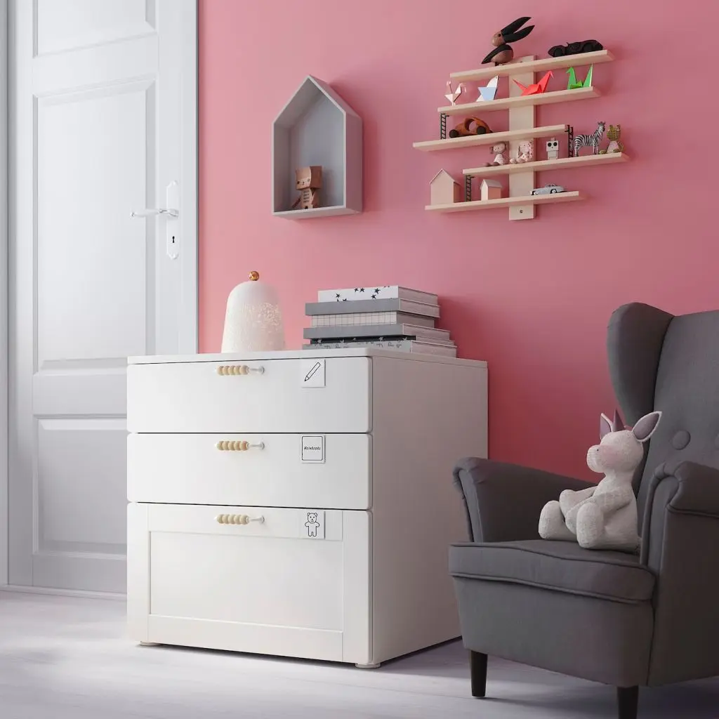 Где удобнее всего хранить ручки, бумагу и другие мелочи? Конечно, в низком комоде! Ребенок сможет сам находить и доставать нужные вещи, а возможно, даже сам убирать их на место.