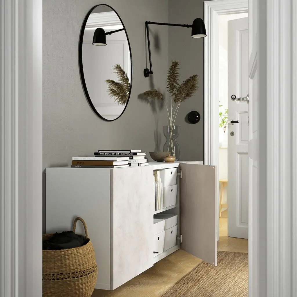 Благодаря слегка текстурированной поверхности фасад КЭЛЛЬВИКЕН напоминает бетон.Настенное крепление придает тумбе лаконичный современный вид и облегчает уборку пола.Съемные полки позволяют регулировать внутреннее пространство в соответствии с потребностями хранения.Конструкция петель позволяет отрегулировать и выровнять дверцу по вертикали и по горизонтали. Дверцы защищают содержимое и выполняют декоративную функцию. Выберите дверцы, подходящие к интерьеру Вашего дома.Организуйте и оптимизируйте систему для хранения БЕСТО, используя подходящие коробки и вставки.Эта комбинация состоит из нескольких частей. Используйте верхнюю панель БЕСТО, чтобы закрыть соединения между каркасами. Продается отдельно.Если вы выберете функцию плавного закрывания, рекомендуем дополнить фасады ручками, чтобы открывать ящики/шкафы было удобнее.Накладная шина БЕСТО для фиксации к стене прилагается.Максимальная нагрузка на подвесной шкаф зависит от материала стены.Для разных стен требуются различные крепежные приспособления. Подберите подходящие для ваших стен шурупы, дюбели, саморезы и т. п. (не прилагаются).