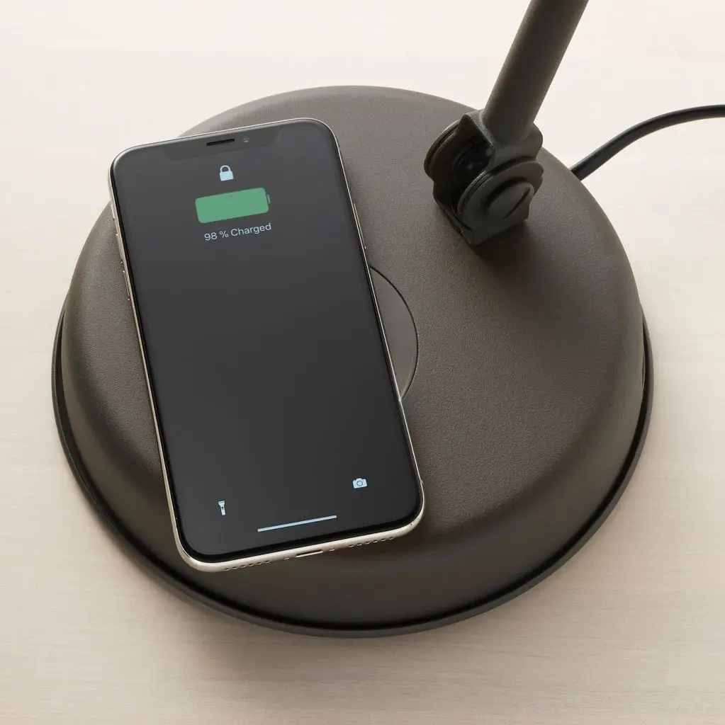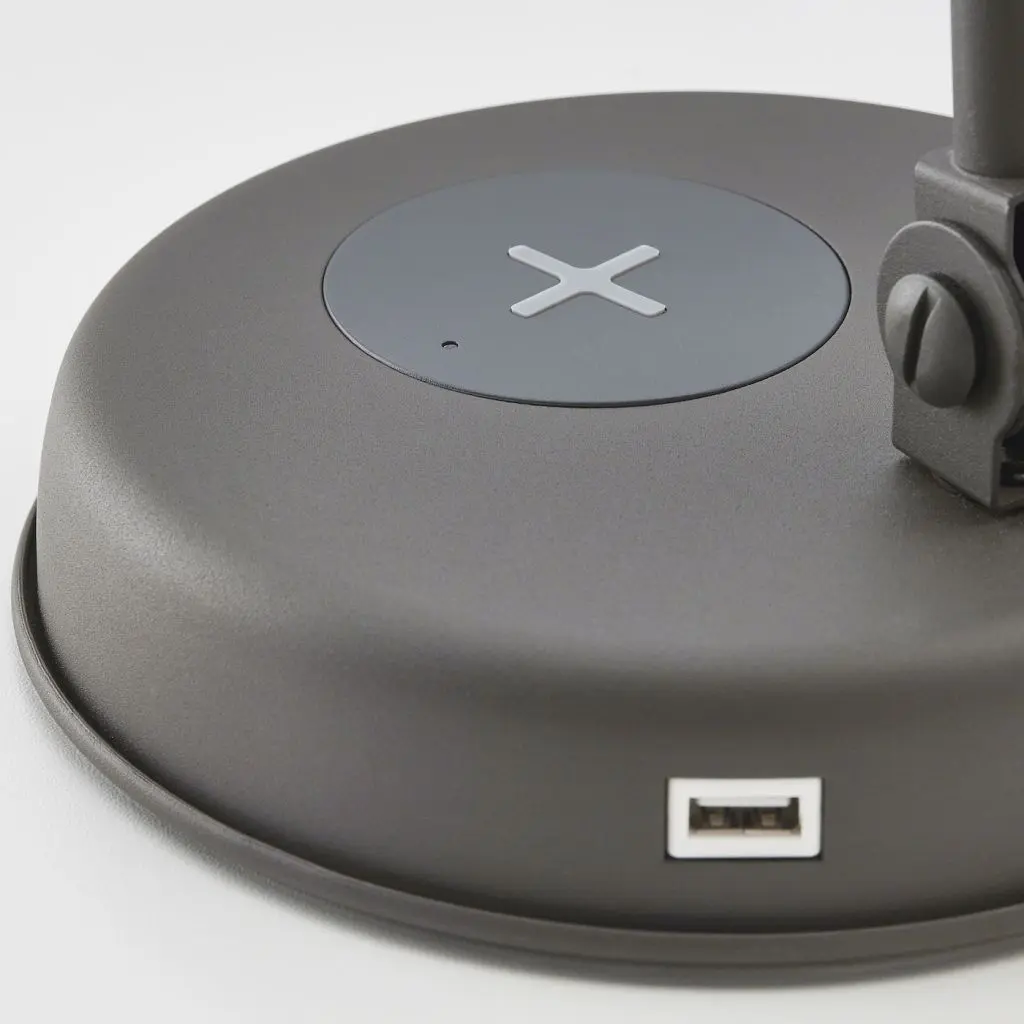 Вы легко можете заряжать телефон с помощью беспроводного зарядного устройства. Если ваш телефон поддерживает беспроводную зарядку, просто разместите его на интегрированном зарядном устройстве.Можно заряжать 2 устройства одновременно, так как в светильник также интегрирован USB-порт.Обеспечивает направленное освещение для чтения.Регулируемый штатив и плафон позволяют легко изменить направление освещения.Лампочка продается отдельно. Мы рекомендуем шарообразный молочный светодиод E14.Работает с Apple® IPhone 8 и Samsung® Galaxy S6 или более новыми моделями.Сертифицировано по стандарту Qi и совместимо со смартфонами и другими устройствами, сертифицированными по стандарту Qi.Если батарея полностью разряжена, для начала зарядки может потребоваться несколько минут. Когда батарея начнет заряжаться, соответствующий символ появится на экране вашего телефона.Время зарядки может варьироваться в зависимости от емкости батареи, уровня заряда, продолжительности использования батареи и температуры окружающей среды.Устройства могут нагреваться в процессе зарядки; это совершенно нормально, после достижения полного уровня заряда они остынут.Макс. мощность: 5 Вт.1 USB-порт.Напряжение в USB-порте: 5 В, постоянный ток.Сила тока в USB-порте: макс. 2000 мА.Работает с Apple® IPhone 8 и Samsung® Galaxy S6 или более новыми моделями.Дизайнер