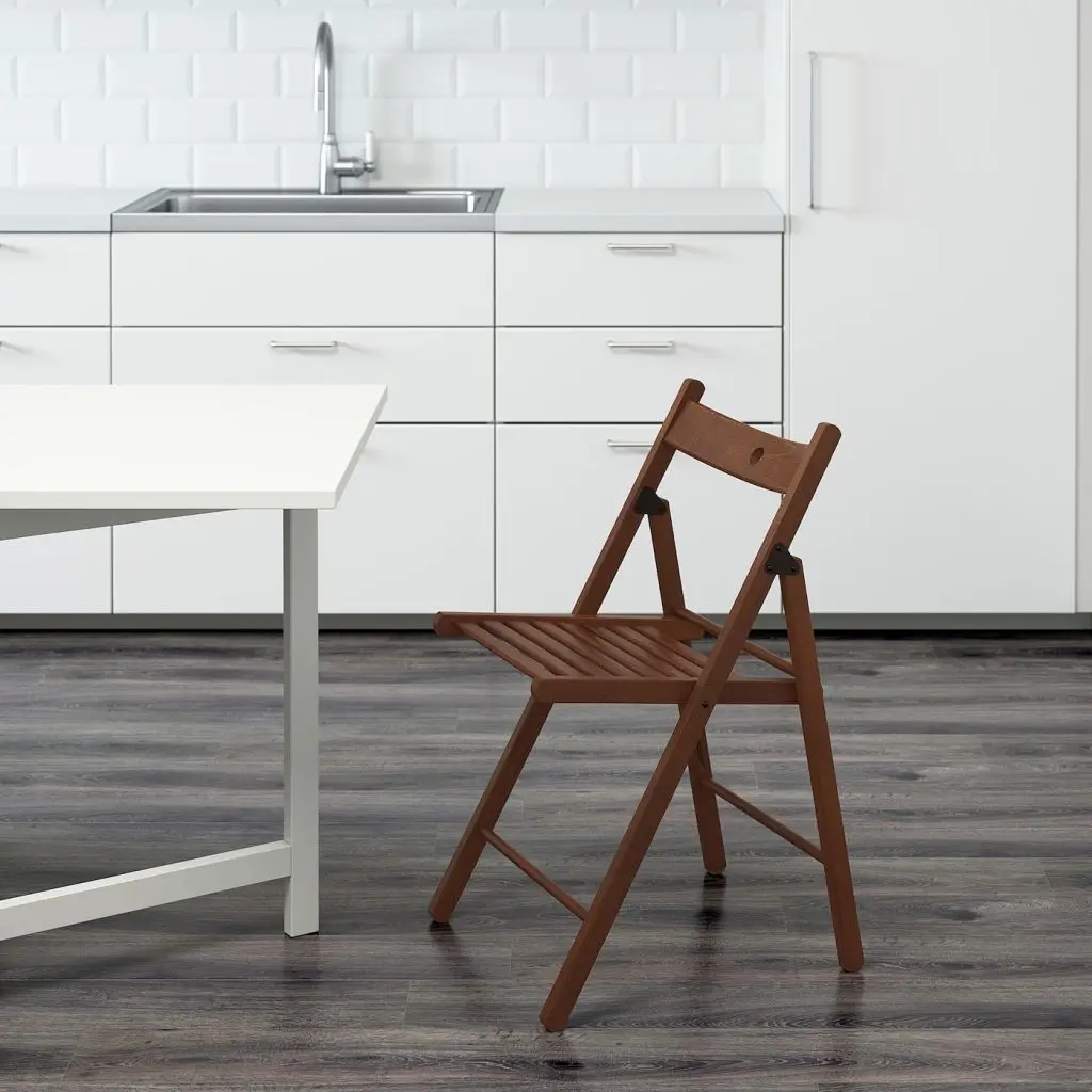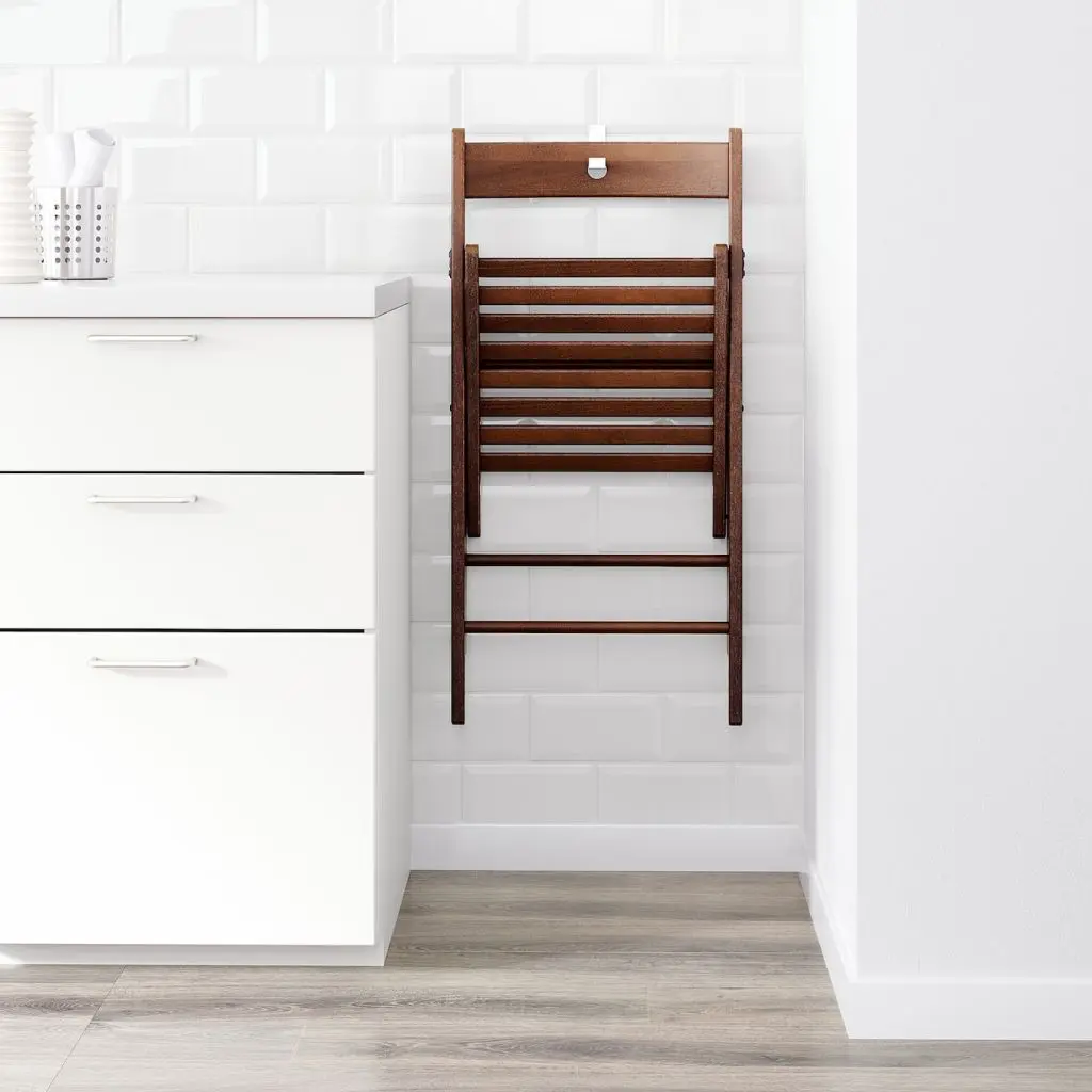 Незаменимая вещь, чтобы быстро позавтракать на кухне или разместить непредвиденных гостей во время большого обеда. За отверстие в спинке стул можно повесить на хранение на стену, чтобы он не занимал лишнего места.