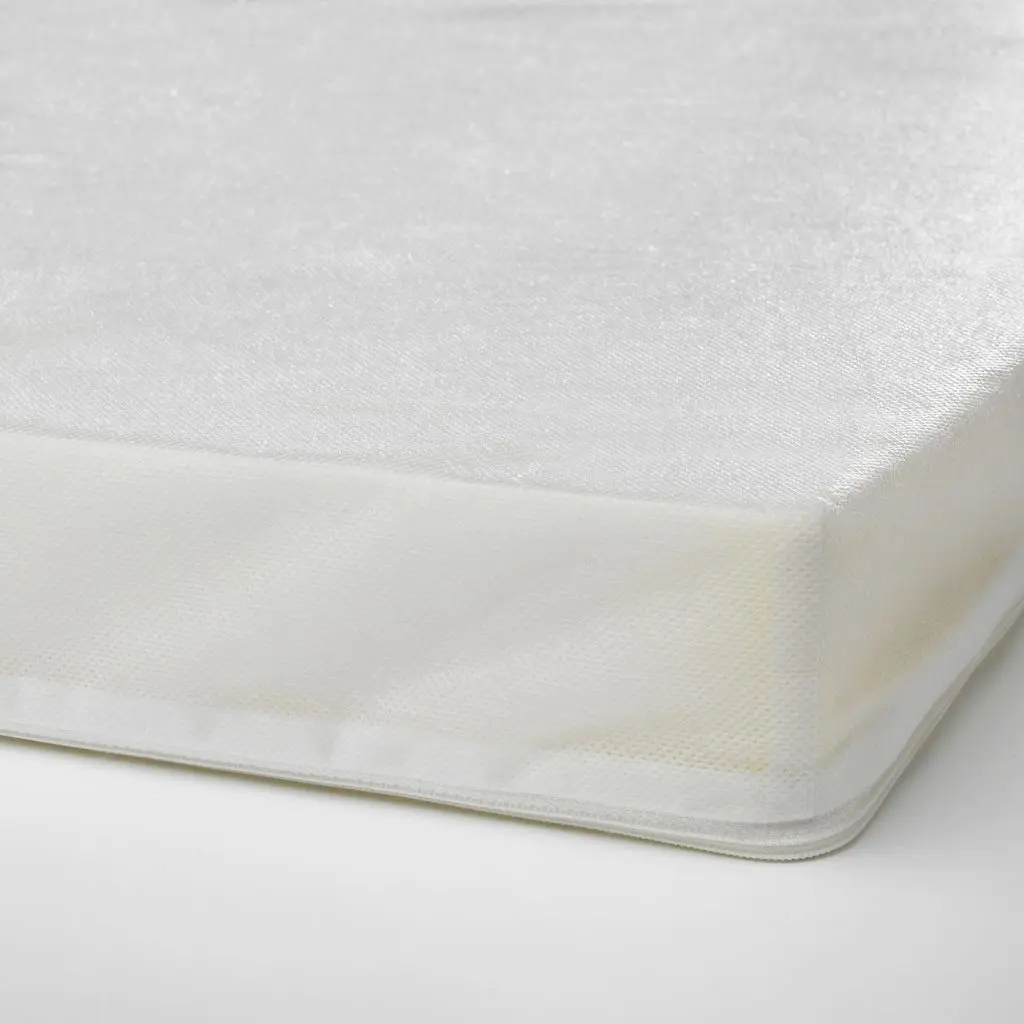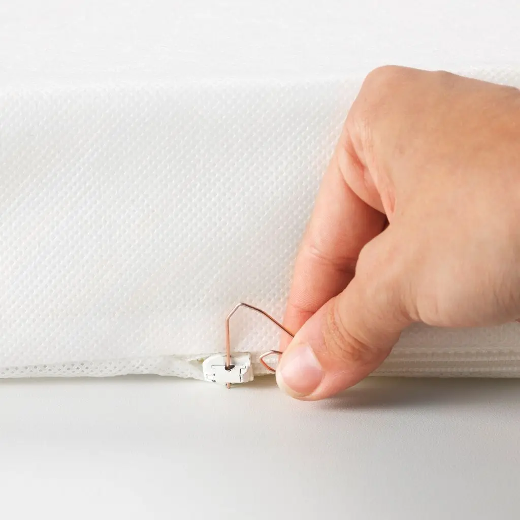 Этот матрас одинаково комфортен с любой стороны, поэтому вы можете переворачивать его. Несъемный чехол можно протереть.Ребенок не сможет открыть молнию, так как для этого нужно воспользоваться скрепкой.Один матрас — три длины. С помощью двух дополнительных частей длину матраса можно увеличивать со 130 см до 165 и 200 см по мере роста ребенка.Дополнительные секции легко добавить в изножье кровати по мере роста ребенка.Этот матрас состоит из трех частей, которые продаются в одной упаковке.Натяжная простыня ЛЕН представлена в двух вариантах размеров. Один размер подходит для матраса раздвижной кровати без дополнительных секций (80×130 см), второй — для матраса раздвижной кровати с 1 дополнительной секцией (80×160 см).Безопасная для детей молния, так как на ней нет «язычка». Молнию можно открыть и закрыть, вставив в бегунок канцелярскую скрепку. Не забудьте потом убрать скрепку.