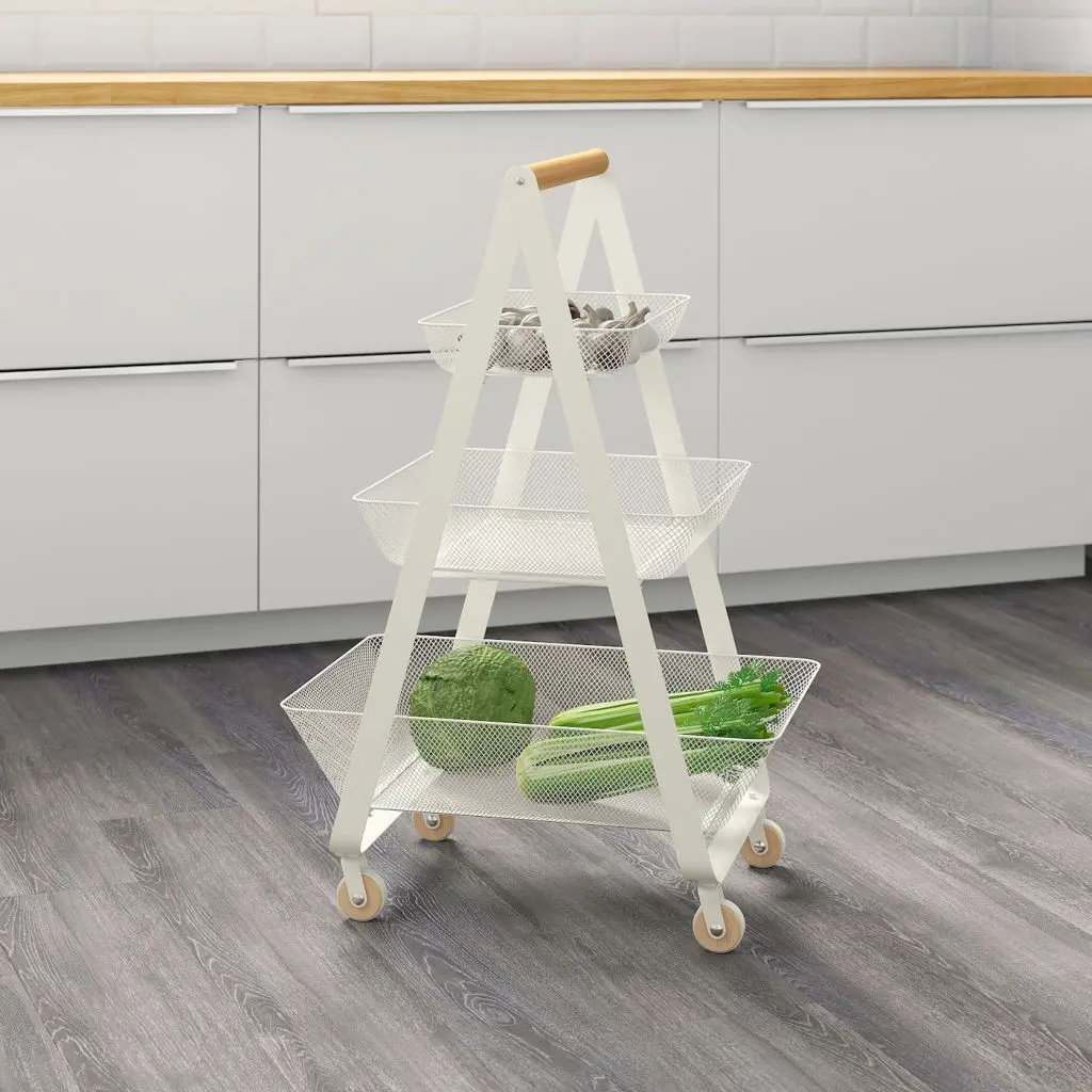 Легко передвигать – колесики крутятся в любом направлении.Отличное решение для хранения в кухне, прихожей, спальне или домашнем офисе.Трехъярусная тележка обеспечивает удобный обзор и доступ к содержимому.Эта тележка протестирована на соответствие самым строгим стандартам прочности, долговечности и безопасности и способна выдержать повседневное использование у вас в доме в течение многих лет.Протестировано и одобрено для контакта с пищевыми продуктами.Размер корзин: 25x38x6 см, 40x38x8 см и 57x38x10 см.Можно дополнить корзиной РИСАТОРП.Дизайнер