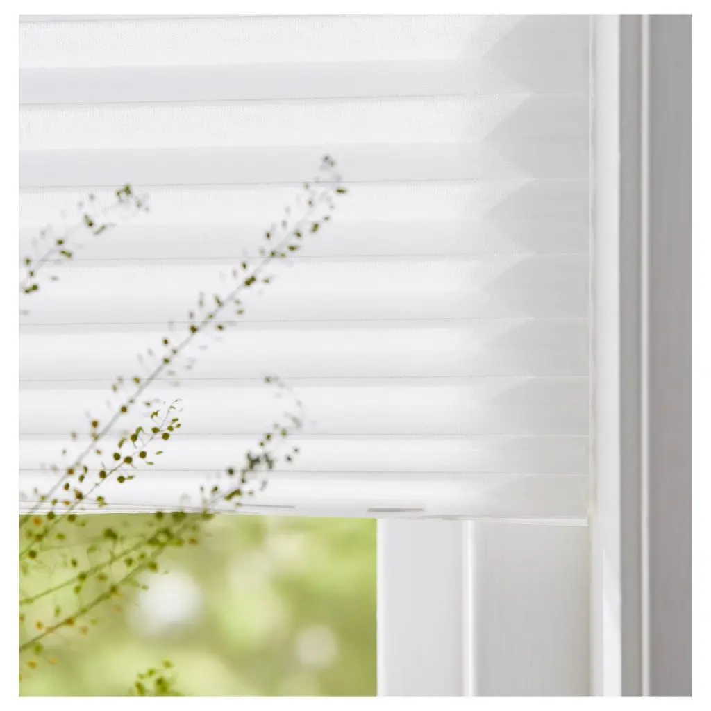 Легко установить на окно, не требуется сверлить отверстия.Можно легко отрезать до необходимого размера.Благодаря прилагаемым зажимам жалюзи можно зафиксировать на нужной высоте.Полностью закрытые жалюзи можно зафиксировать на нижней части оконного проема с помощью прилагаемой застежки-«липучки».Плиссированные жалюзи лучше размещать на гладкой поверхности.Дизайнер