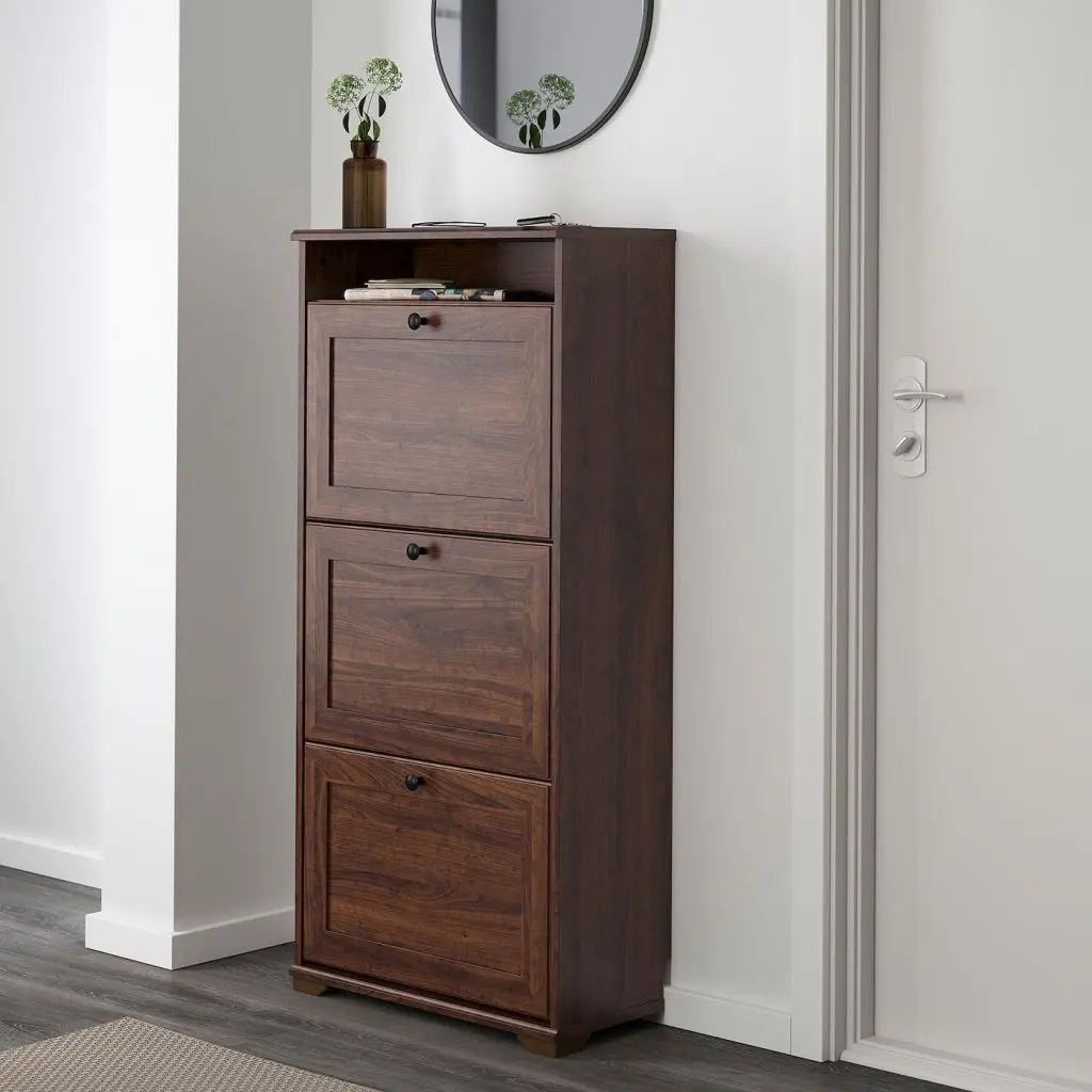 Обеспечивает идеальный порядок в хранении обуви и не занимает много места на полу.Размер отделений можно отрегулировать, переставив или убрав разделители.Благодаря циркуляции воздуха при хранении ваша обувь дольше будет выглядеть как новая.Вмещает мин. 12 пар обуви.Эту галошницу необходимо крепить к стене.Для разных стен требуются различные крепежные приспособления. Подберите подходящие для ваших стен шурупы, дюбели, саморезы и т. п. (не прилагаются).Можно дополнить другой мебелью серии БРУСАЛИ.Дизайнер
