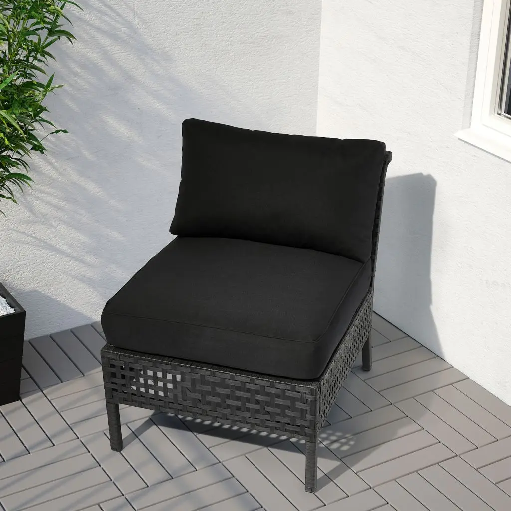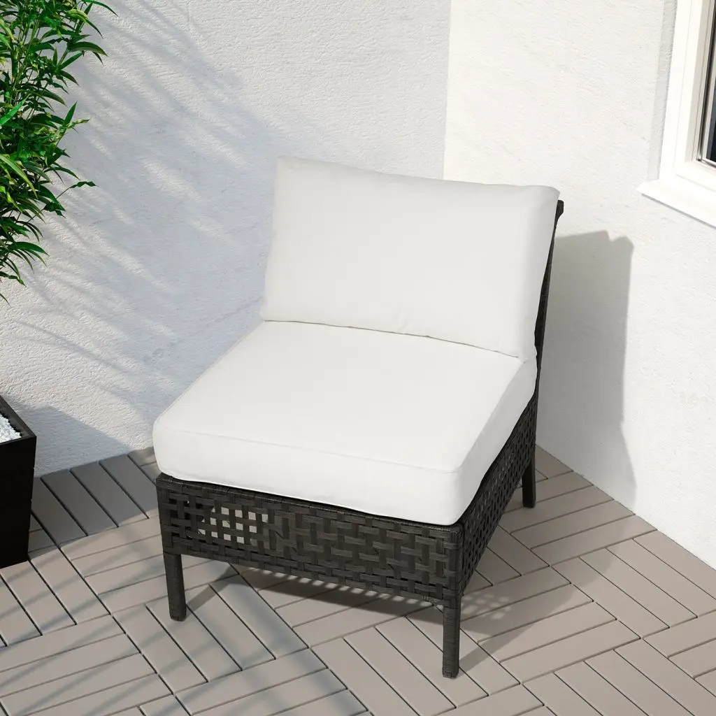 Комбинируя разные секции, вы можете создать диван, по форме и размеру идеально соответствующий вашим потребностям.Мебель из пластика под ротанг и устойчивого к появлению ржавчины алюминия отличается прочностью, простотой в уходе и выдержит любые капризы погоды.Вы можете сделать диван более комфортным и придать ему индивидуальный облик с помощью декоративных подушек разных размеров, цветов и орнаментов.Можно дополнить подушками КУНГСЭ и ХОЛЛО.Дизайнер