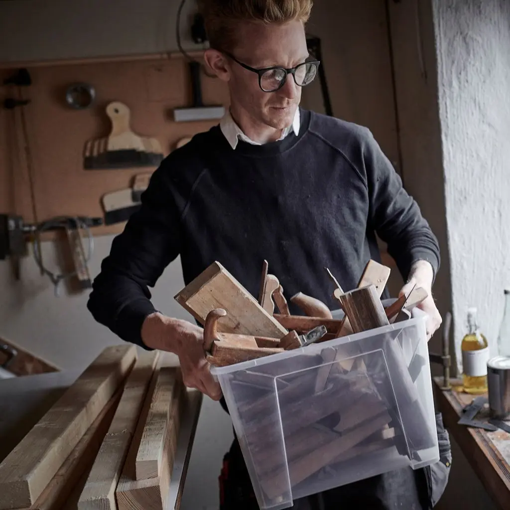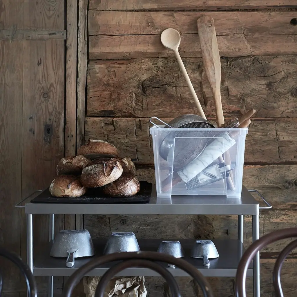 Можно хранить спортивный инвентарь, садовые инструменты или аксессуары для уборки.Прозрачный пластик позволяет видеть содержимое и не тратить время на поиски нужной вещи.Можно дополнить крышкой САМЛА, 11/22 л, продается отдельно.Рекомендуется использовать только в помещении.Дизайнер