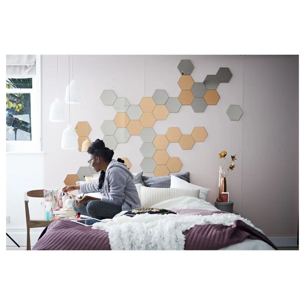 Зеркала можно повесить по-разному: три или больше, два или одно.2 разных оттенка коричневого стекла, по 5 шт. каждого оттенкаДвусторонняя клейкая лента прилагается.С помощью двусторонней клейкой ленты закрепите зеркало на ровной сухой и чистой поверхности. Поверхность не должна быть обработана воском или силиконом.Нельзя использовать во влажных помещениях.Дизайнер