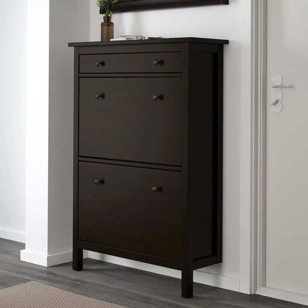 Если обувь содержится в идеальном порядке, как в этой галошнице, то быстро собраться и выйти из дома гораздо легче. Простой классический дизайн прекрасно сочетается с другой мебелью серии ХЕМНЭС.
