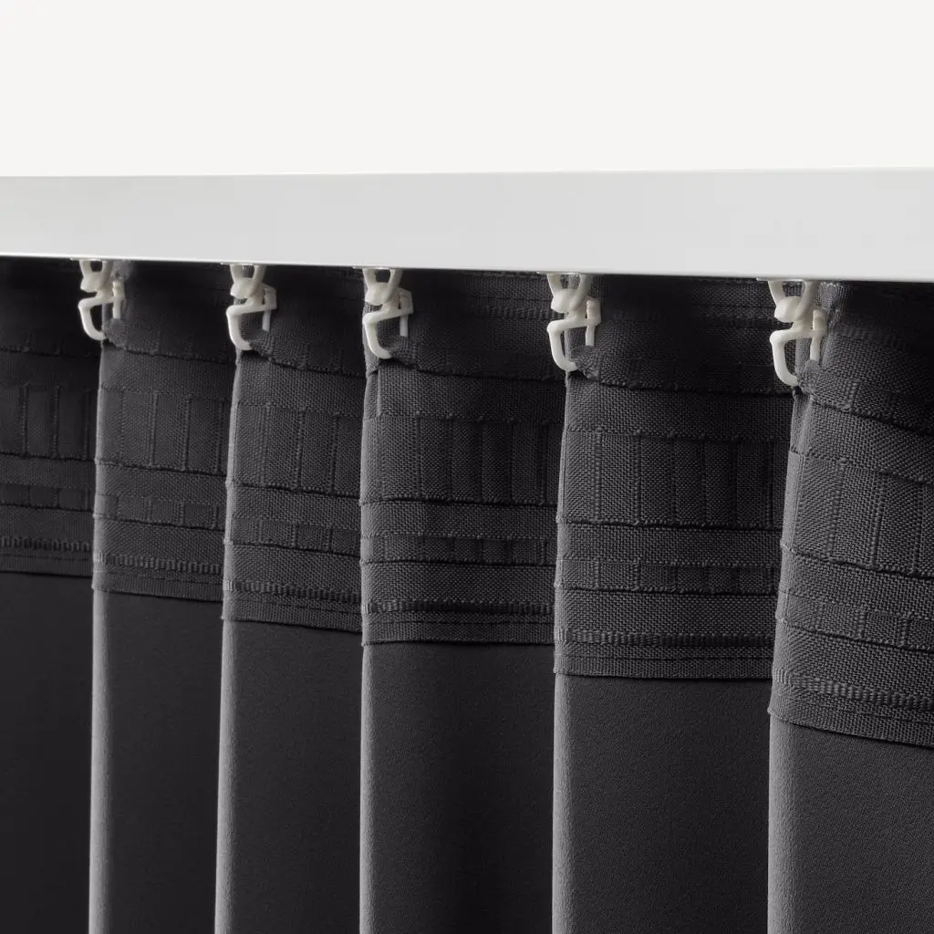 Не пропускают зимний сквозняк и летнюю жару.Гардины можно вешать на гардинный карниз или гардинную шину.Тесьма по верхнему краю позволяет делать складки на гардинах, используя гардинные крючки РИКТИГ.Гардины можно вешать, пропустив карниз через потайные петли, или с помощью колец и крючков.Плотные гардины эффективно блокируют свет и защищают от посторонних взглядов.В комплект входит: 2 гардины.Указаны размеры одной гардины.Дизайнер
