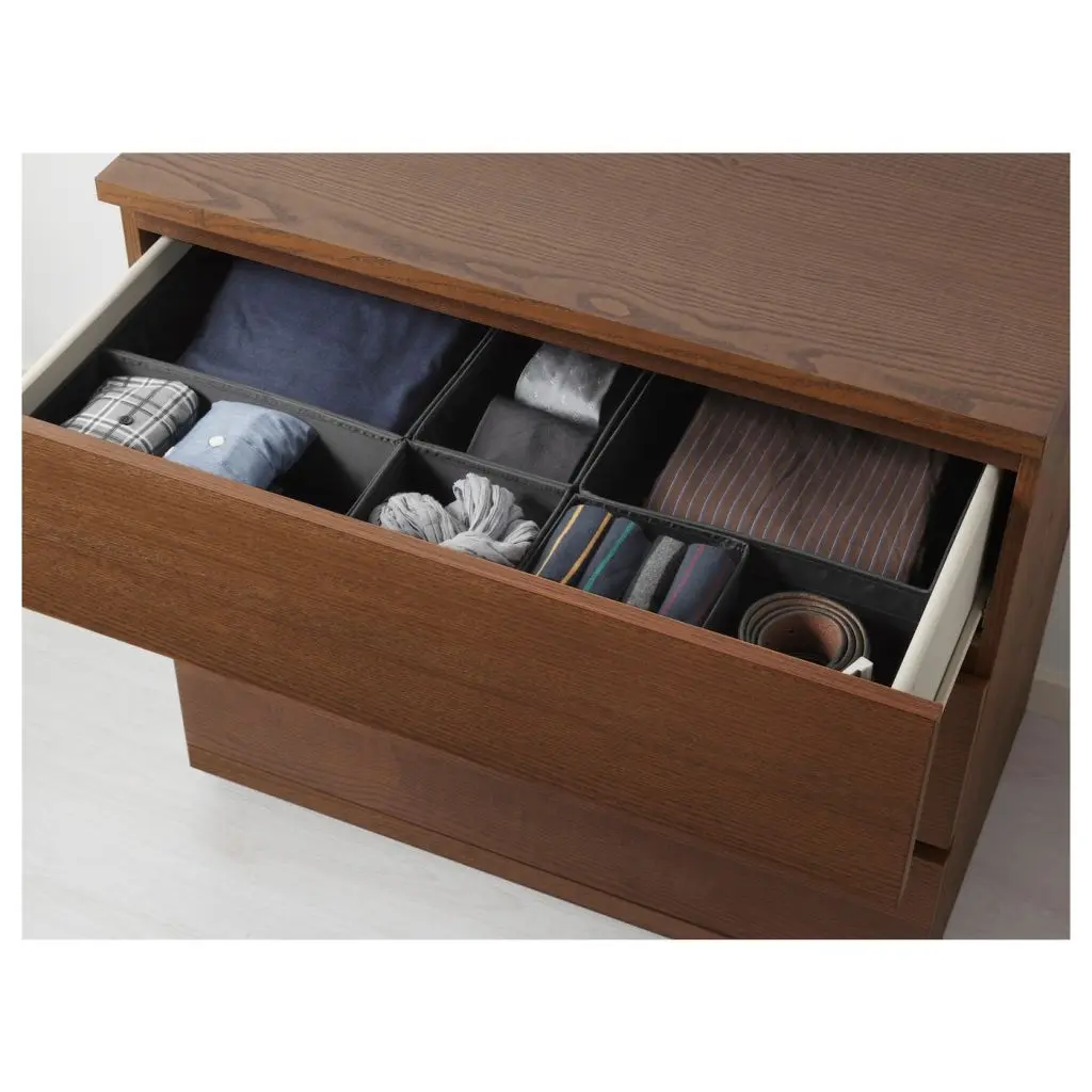 Ваш дом должен быть абсолютно безопасен для всей семьи. Именно поэтому крепеж безопасности для фиксации комода к стене прилагается.Естественный рисунок и выразительная фактура ясеневого шпона подчеркнуты брашированием и обработкой матовым лаком.Благодаря отделке из шпона дерева этот комод с годами будет выглядеть только лучше.Чтобы ящики не выпадали при открывании, они оснащены специальным стопором.ВНИМАНИЕ! ОПАСНОСТЬ ОПРОКИДЫВАНИЯ! Незакрепленная мебель может опрокинуться. Эту мебель необходимо крепить к стене с помощью прилагаемого крепежа для предотвращения опрокидывания.Для различных материалов стен требуются различные крепежные средства. Используйте крепежные средства, подходящие для материала стен в вашем доме.В ящик можно положить примерно 15 пар брюк или 30 футболок.Дизайнер