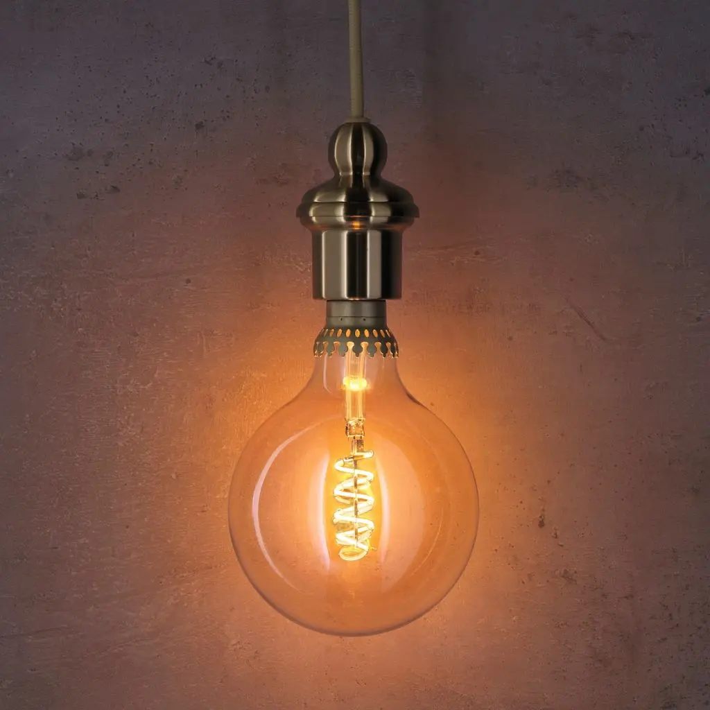 Эта энергосберегающая светодиодная лампа похожа на старинную лампочку накаливания. Проникая сквозь тонированное стекло колбы, свет получается теплым и красивым. Лампу можно использовать с прозрачным абажуром или без него — для создания эффекта ретро.