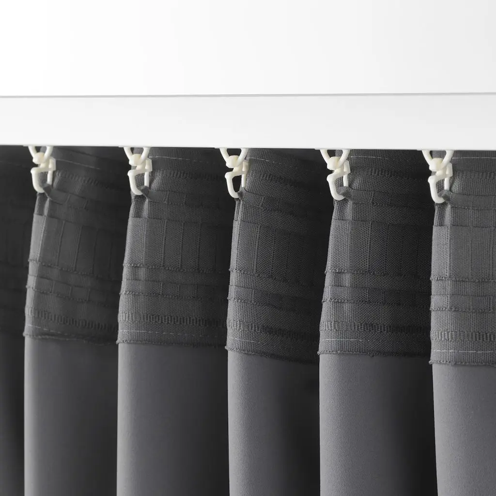 Гардины блокируют свет и полностью затемняют комнату.Не пропускают зимний сквозняк и летнюю жару.Гардины можно вешать на гардинный карниз или гардинную шину.Тесьма по верхнему краю позволяет делать складки на гардинах, используя гардинные крючки РИКТИГ.Гардины можно вешать, пропустив карниз через потайные петли, или с помощью колец и крючков.Тесьма в цвет гардин, поэтому гардина смотрится аккуратно и с обратной стороны.В комплект входит: 2 гардины.Указаны размеры одной гардины.Дизайнер