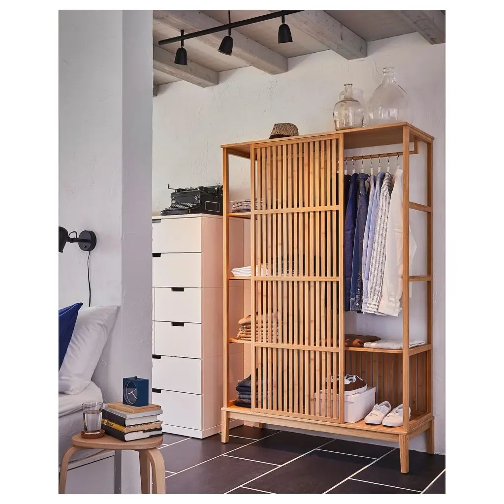 В этом гардеробе сочетаются лаконичные линии скандинавского дизайна и восточные традиции. Здесь удобно хранить одежду и другие вещи.
