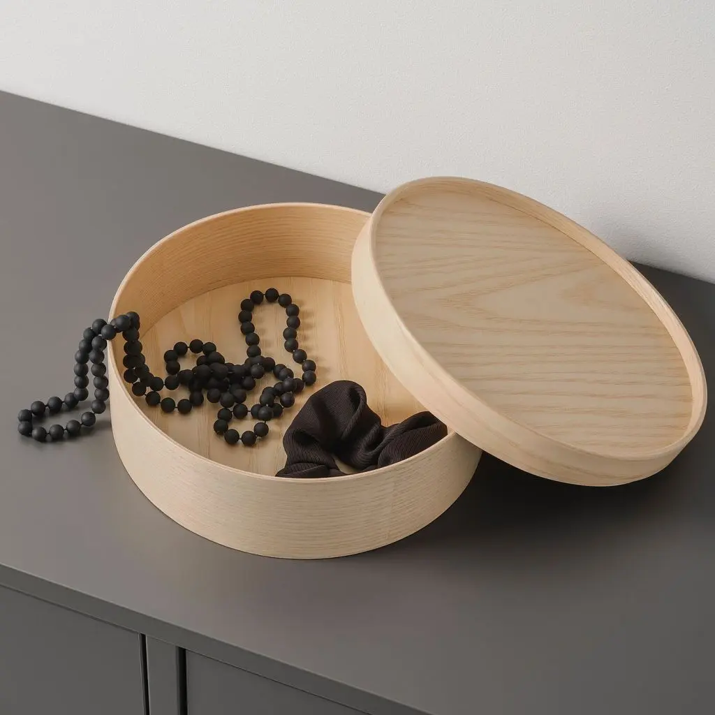 Эта коробка плавной округлой формы из ясеневого шпона с годами будет выглядеть только лучше и привлечет внимание, куда бы вы ее ни поставили.
