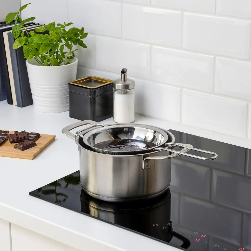 Иногда блюдо требует особой заботы, и в этом вам поможет вставка-водяная баня. Поместите ее в кастрюлю с кипящей водой и приготовьте восхитительный соус Беарнез или растопите шоколад для десерта.