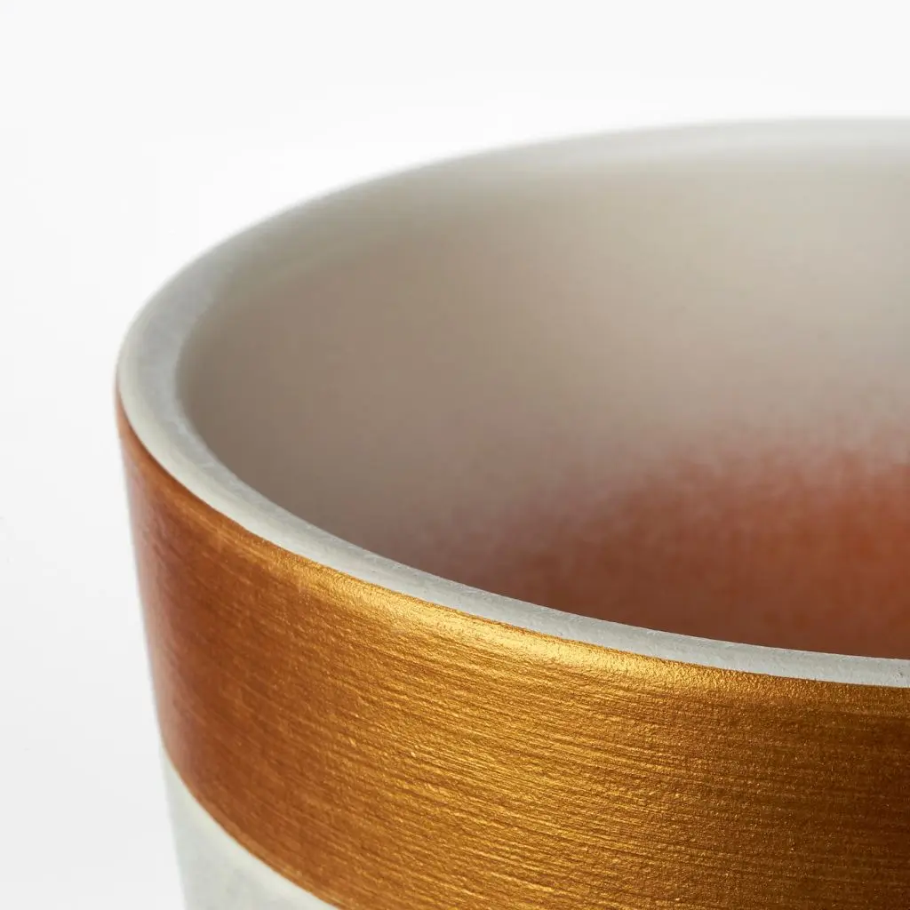 Горшок цветочный, белый, золотой полоска, 12 см
