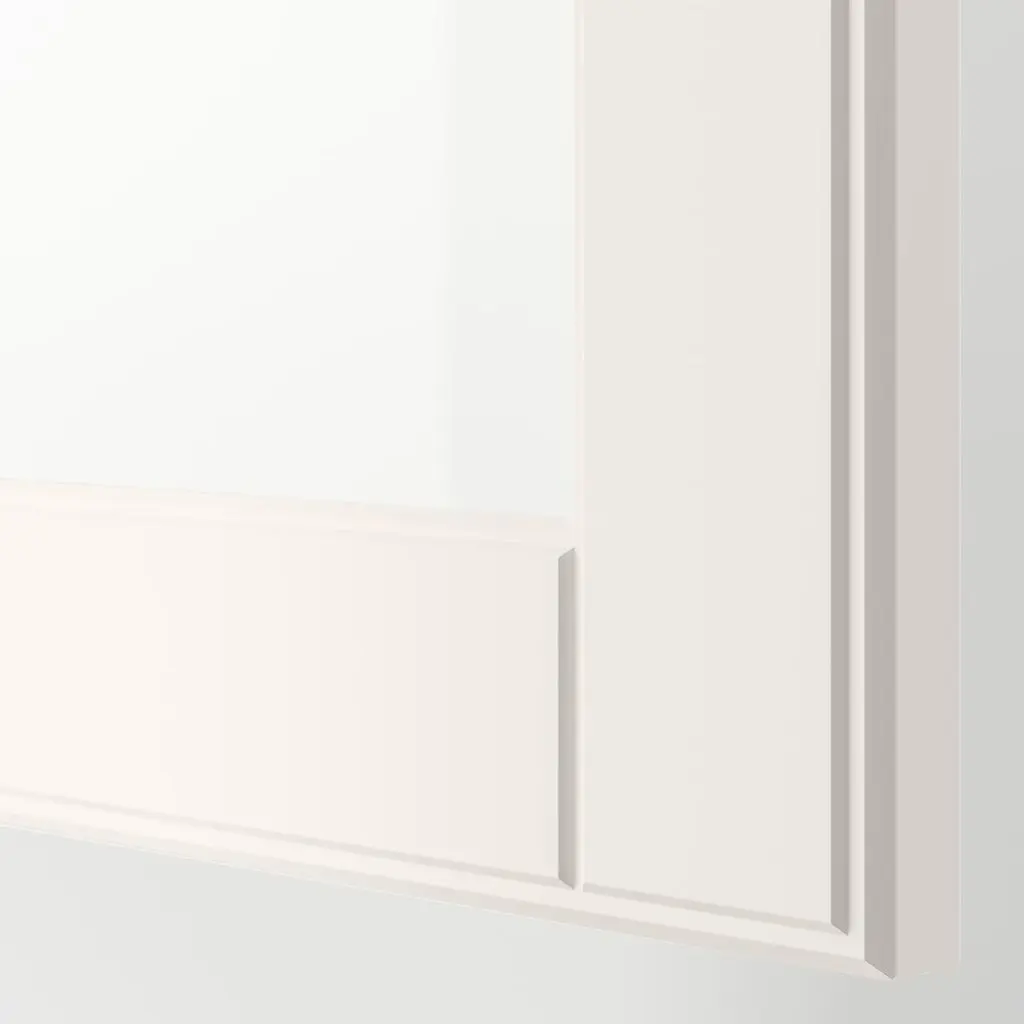 Белые дверцы ОСТВИК традиционного дизайна станут отличным решением, чтобы ваши любимые предметы были на виду и при этом надежно защищены от пыли. Можно дополнить глухими фасадами СМЕВИКЕН.