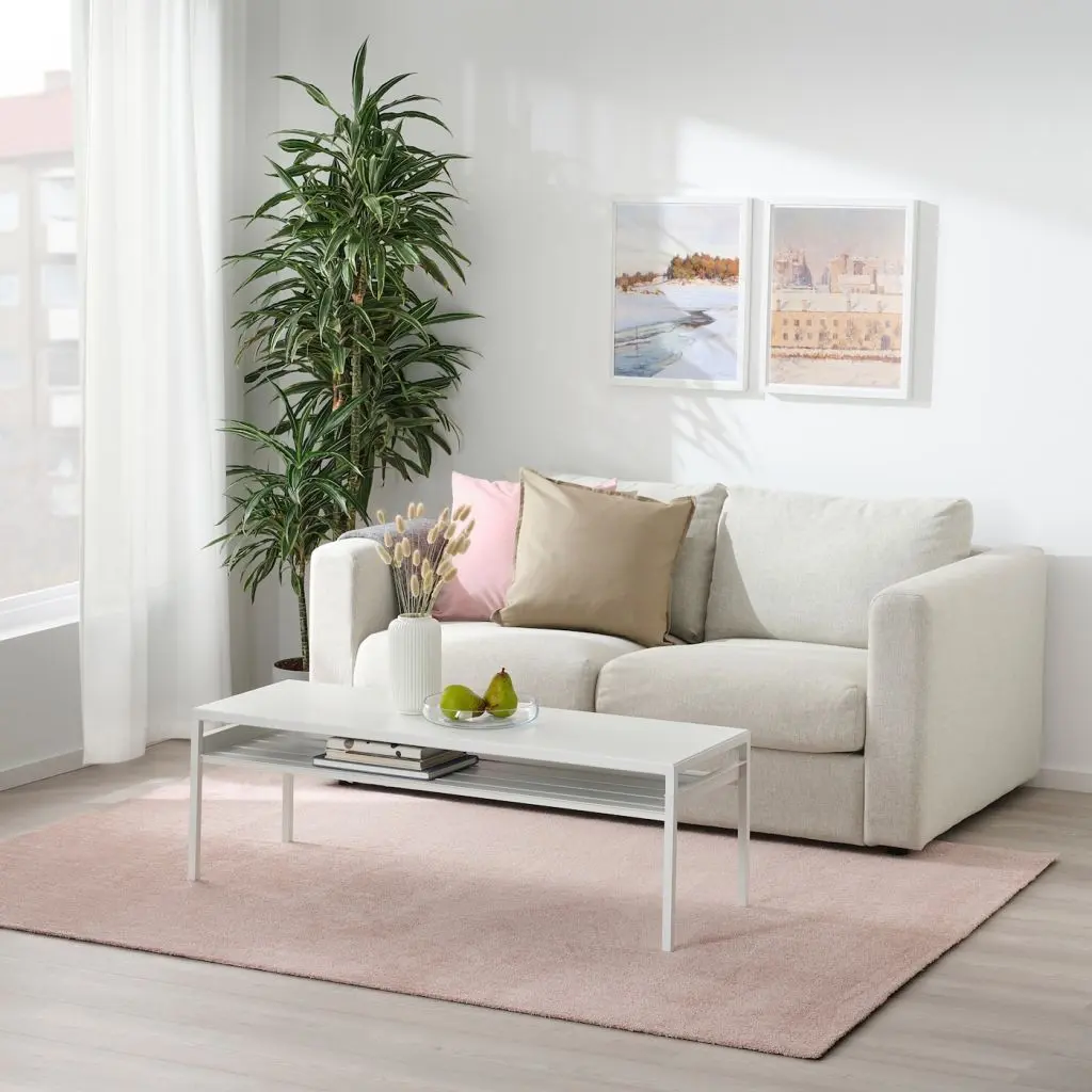 Классический бледно-розовый ковер с легким блеском будет прекрасно смотреться в любом интерьере. Толстый ворс придает поверхности приятную мягкость. Экологичное решение, так как ковер изготовлен из переработанного полиэстера.