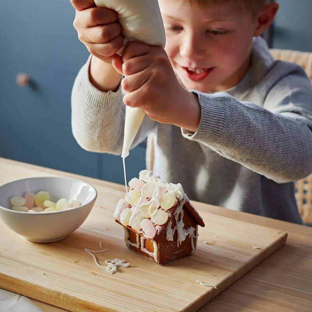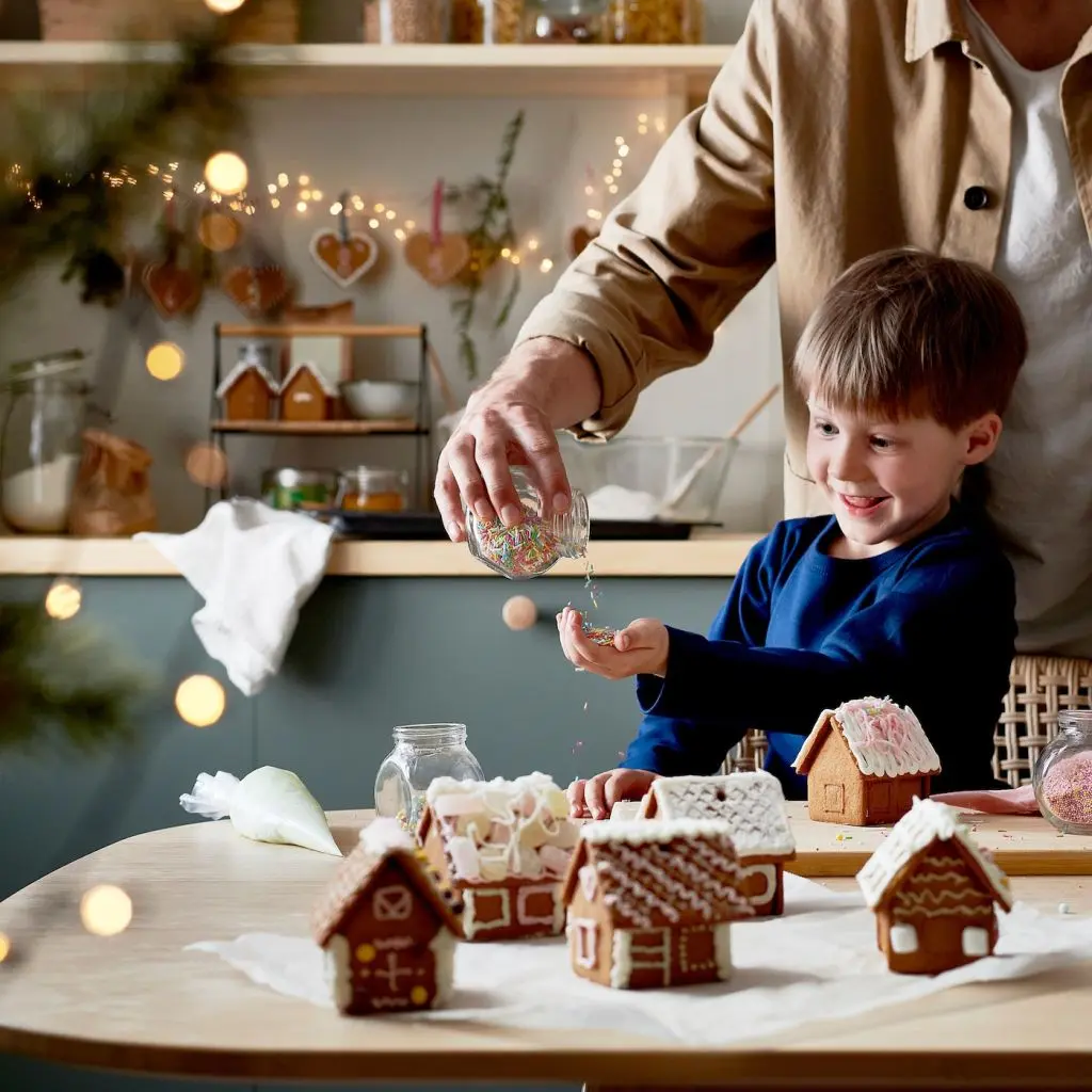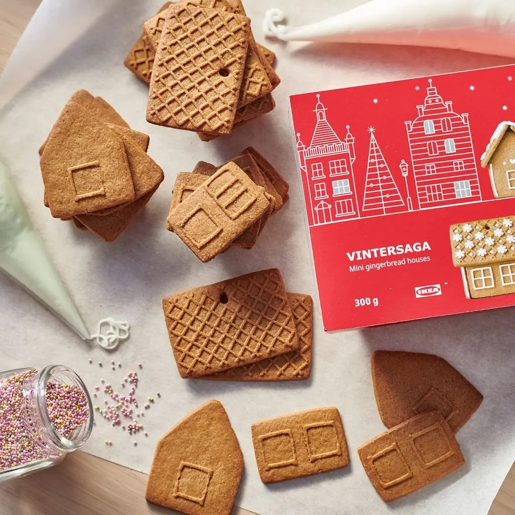 С VINTERSAGA вы можете построить 6 маленьких домиков из пряничного теста. Вам не составит труда соединить детали вместе с помощью глазури, следуя инструкциям на упаковке.Пусть вся семья погрузится в рождественское настроение и даст волю воображению — вы можете вместе украсить пряничные домики глазурью и сладостями.Из этих 6 мини-домиков вы можете построить собственный пряничный городок прямо на столе или скамье. Либо вы можете продеть веревочку через отверстия в домиках и подвесить их на новогоднюю ель или окно.