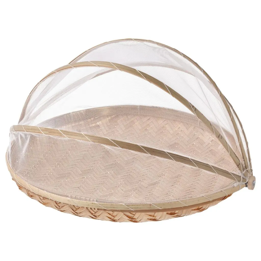 Накрывайте на стол и храните еду с помощью самой природы. Этот поднос со складной сеткой изготовлен вручную из бамбука — практичный и красивый, так что его можно смело поставить на стол.