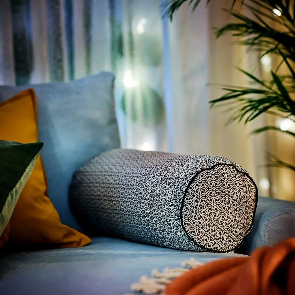 Валик ХЕМБЬЮДЕН с приятным на ощупь хлопковым чехлом с традиционным марокканским орнаментом и мягким полиэстерным наполнителем. Удобно использовать как опору для поясницы или положить под голову.