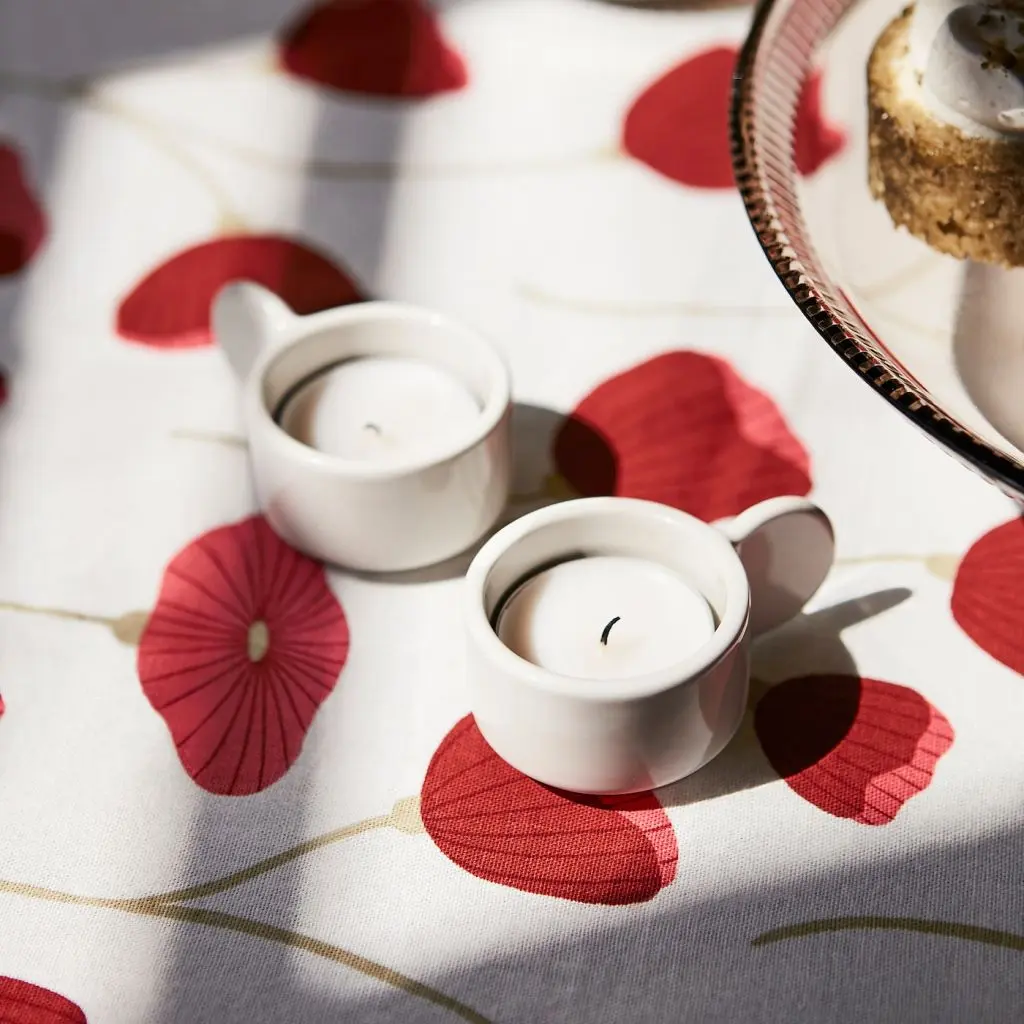 Эта скатерть превращает ваш обеденный стол в прекрасное маковое поле. Нравится цветочный орнамент? В коллекции АНЛЕДНИНГ есть несколько дополняющих скатерть текстильных аксессуаров и украшений.