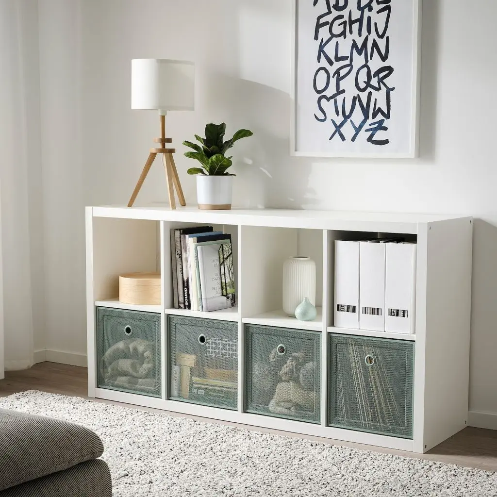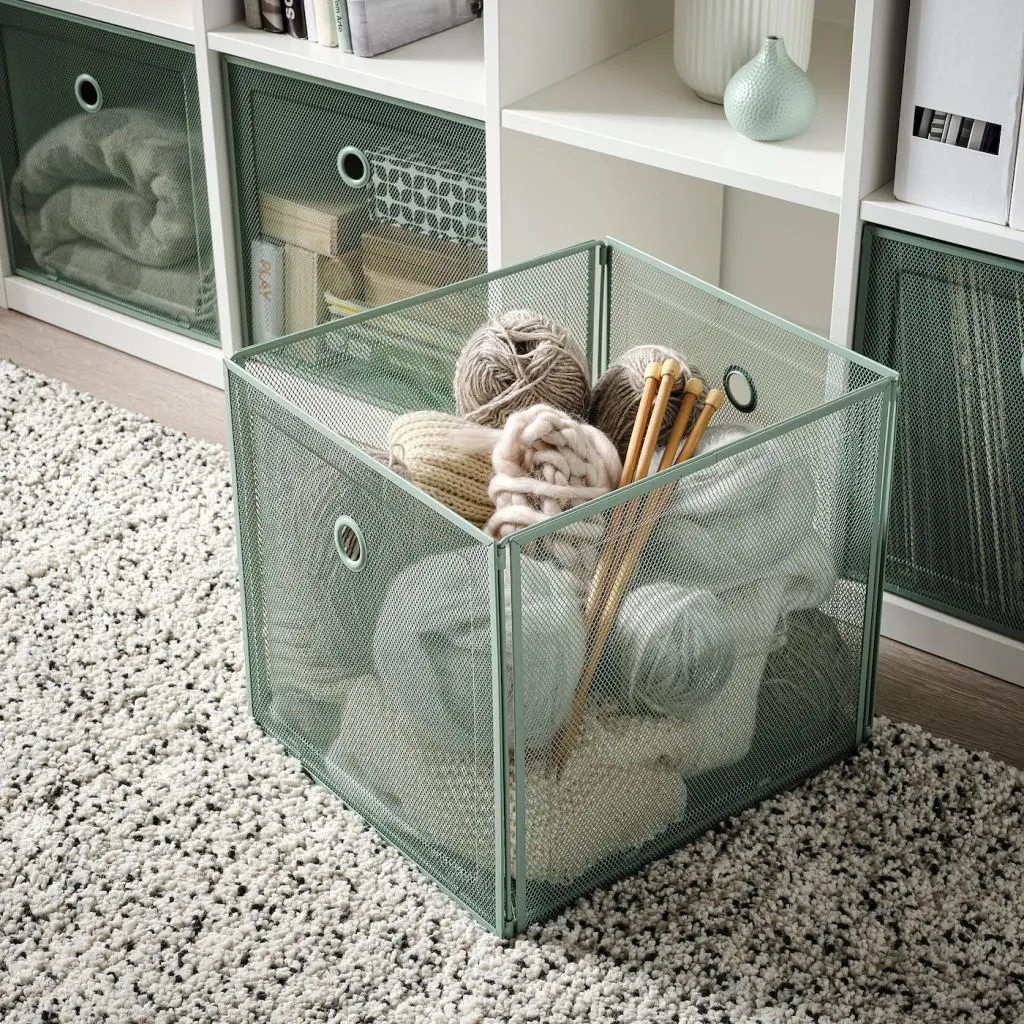 В этой зеленой металлической коробке ваши вещи буду храниться аккуратно. Через сетчатые боковины хорошо видно содержимое, по размеру коробка идеально подходит для стеллажа КАЛЛАКС.