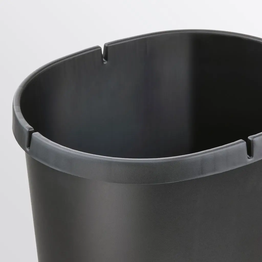 Благодаря небольшим отверстиям по верхнему краю вы сможете закрепить в этом контейнере сразу 2 мешка или повесить один мешок для влажных отходов, а в свободное пространство складывать сухие отходы без мешка.