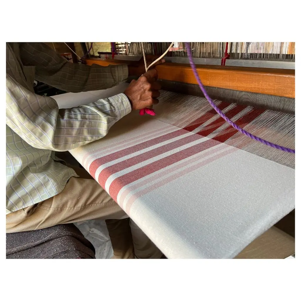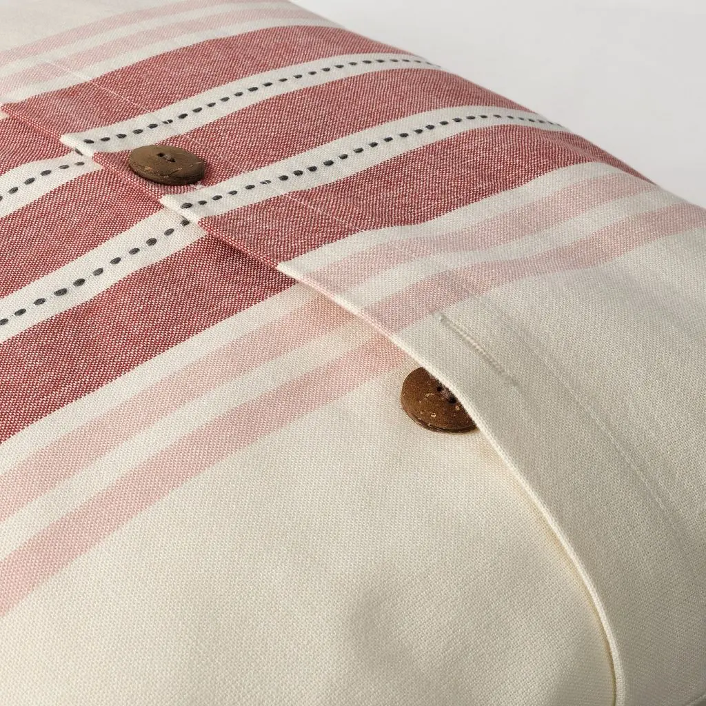 Хлопковый полосатый чехол украшен вышивкой и декоративными пуговицами. Каждый чехол уникален, так как изготавливается вручную искусными мастерицами социального предприятия Rangsutra в Индии.