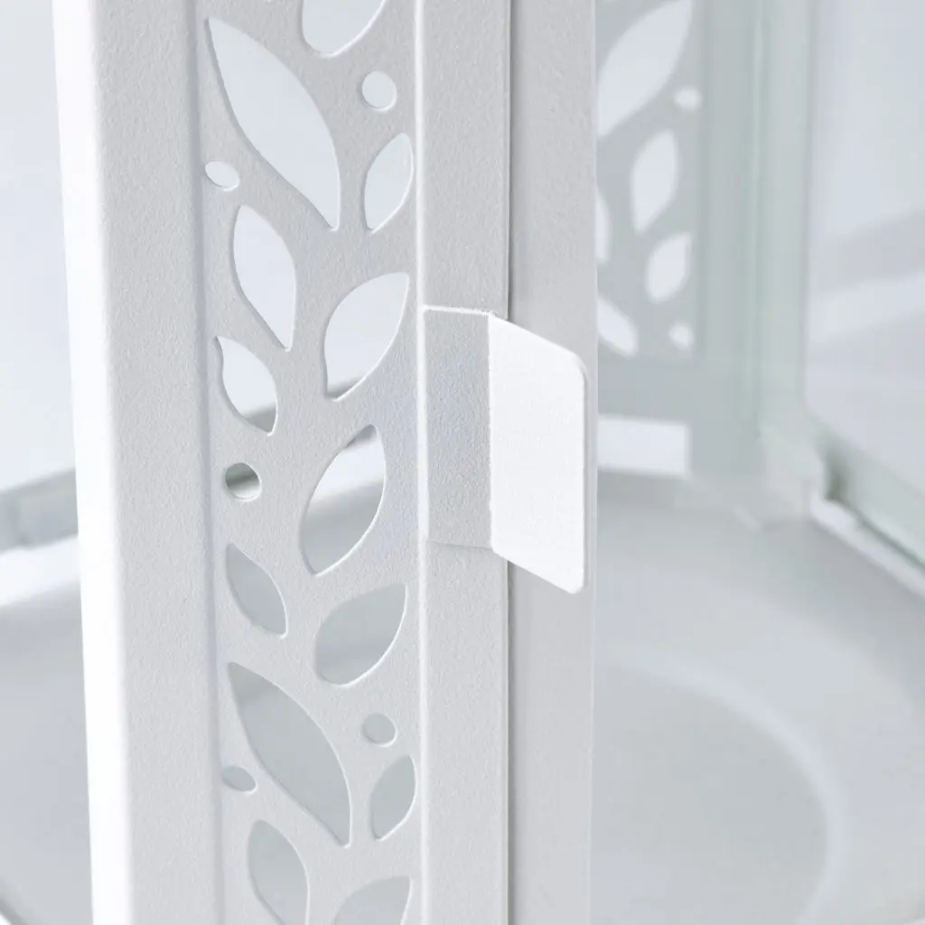 Мягкий свет проникает сквозь резной узор фонаря для свечи.