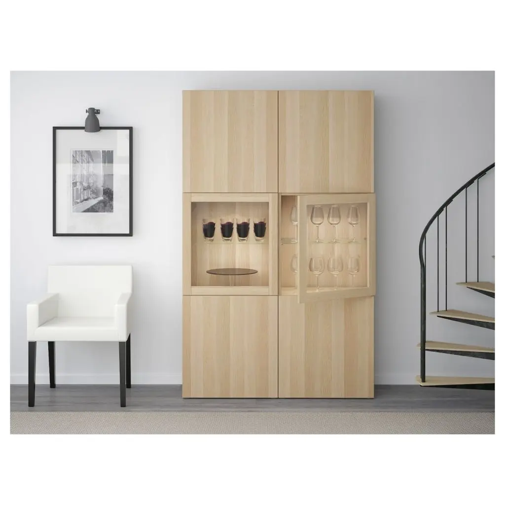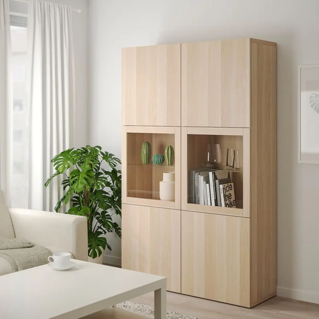 Вы можете использовать нажимной механизм или устройство для плавного закрывания. В первом варианте для открывания дверцы достаточно слегка нажать на нее. А во втором – гарантировано плавное и бесшумное закрывание.Дверцы защищают содержимое и выполняют декоративную функцию. Выберите дверцы, подходящие к интерьеру Вашего дома.Стеклянные дверцы обеспечивают обзор содержимого, защищая его от пыли.Съемные полки позволяют регулировать пространство.Эту мебель необходимо крепить к стене с помощью прилагаемого стенного крепежа.Будьте осторожны при обращении с закаленным стеклом! Из-за поврежденных краев и царапин на поверхности стекло может внезапно разбиться.Для разных стен требуются различные крепежные приспособления. Подберите подходящие для ваших стен шурупы, дюбели, саморезы и т. п. (не прилагаются).Внутренние элементы для организации хранения в модулях БЕСТО продаются отдельно.Если вы выберете функцию плавного закрывания, рекомендуем дополнить фасады ручками, чтобы открывать ящики/шкафы было удобнее.Дизайнер