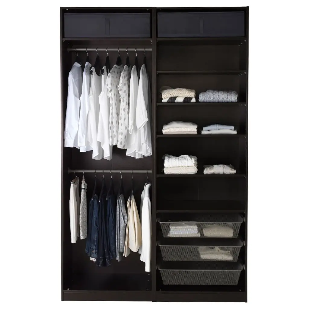 Бесплатно 10 лет гарантии. Подробнее об условиях гарантии – в гарантийной брошюре.Эту комбинацию ПАКС/КОМПЛИМЕНТ можно адаптировать в соответствии с вашими потребностями, воспользовавшись программой для проектирования гардеробов ПАКС.Регулируемые ножки позволяют скорректировать неровности пола.Раздвижные дверцы не требуют места при открывании.Обеспечивает плавное и бесшумное закрывание дверец.С помощью программы планирования гардероба ПАКС вы можете легко дополнить свою комбинацию интегрированной подсветкой. После выбора источника освещения программа предложит необходимые аксессуары.Сетчатый материал обеспечивает циркуляцию воздуха. Корзина подходит для хранения сложенной одежды и различных аксессуаров.Для раздвижных дверей не нужны ручки, что придает дизайну гардероба лаконичный облик, позволяя сочетать его с мебелью в разных стилях.Эту мебель необходимо крепить к стене с помощью прилагаемого стенного крепежа.Для разных стен требуются различные крепежные приспособления. Подберите подходящие для ваших стен шурупы, дюбели, саморезы и т. п. (не прилагаются).Для сборки этой мебели требуются два человека.Требуемая мин. высота потолка: 244 см. Следуйте инструкциям по сборке в упаковке.Аксессуары для организации хранения в гардеробе продаются отдельно.На платяную штангу можно повесить примерно 30 рубашек на плечиках.Дизайнер