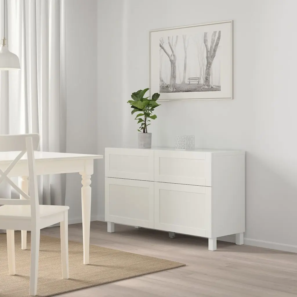 Благодаря доводчикам ящики закрываются плавно и бесшумно.Два ящика и полки за дверцами обеспечат достаточно места для хранения.Съемные полки позволяют регулировать пространство.Ножки придают комбинации БЕСТО более легкий вид, поднимая модули на полом. Кроме того, это упрощает уборку.Эту мебель необходимо крепить к стене с помощью прилагаемого стенного крепежа.Для разных стен требуются различные крепежные приспособления. Подберите подходящие для ваших стен шурупы, дюбели, саморезы и т. п. (не прилагаются).Внутренние элементы для организации хранения в модулях БЕСТО продаются отдельно.Если вы выберете функцию плавного закрывания, рекомендуем дополнить фасады ручками, чтобы открывать ящики/шкафы было удобнее.Дизайнер
