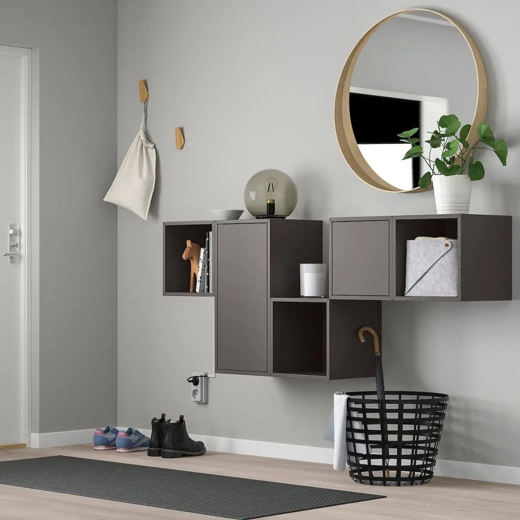Комбинируйте открытое и закрытое хранение в зависимости от потребностей.Ассиметричное расположение секций подчеркнет индивидуальность решения для хранения.Дверца со встроенным нажимным механизмом открывается легким нажатием.Съемная полка позволяет регулировать внутреннее пространство в соответствии с потребностями хранения.Накладные шины ЭКЕТ для фиксации к стене прилагаются.Для разных стен требуются различные крепежные приспособления. Подберите подходящие для ваших стен шурупы, дюбели, саморезы и т. п. (не прилагаются).Максимальная нагрузка на подвесной шкаф зависит от материала стены.Дизайнер