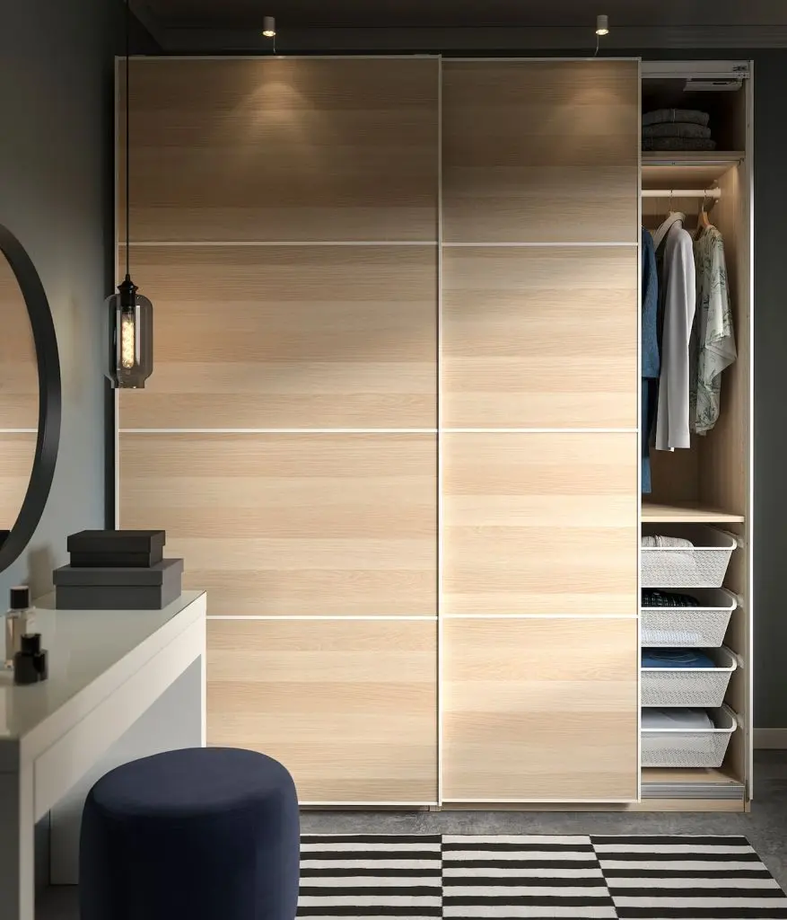 Бесплатно 10 лет гарантии. Подробнее об условиях гарантии – в гарантийной брошюре.Эту комбинацию ПАКС/КОМПЛИМЕНТ можно адаптировать в соответствии с вашими потребностями, воспользовавшись программой для проектирования гардеробов ПАКС.Регулируемые ножки позволяют скорректировать неровности пола.Раздвижные дверцы не требуют места при открывании.Устройство обеспечивает плавное и бесшумное открывание и закрывание дверей.С помощью программы планирования гардероба ПАКС вы можете легко дополнить свою комбинацию интегрированной подсветкой. После выбора источника освещения программа предложит необходимые аксессуары.Переверните панели, чтобы изменить внешний вид гардероба. Каждая сторона имеет свою отделку. Используйте один вариант отделки или сочетайте оба в одном решении.Сетчатый материал обеспечивает циркуляцию воздуха. Корзина подходит для хранения сложенной одежды и различных аксессуаров.Для раздвижных дверей не нужны ручки, что придает дизайну гардероба лаконичный облик, позволяя сочетать его с мебелью в разных стилях.Эту мебель необходимо крепить к стене с помощью прилагаемого стенного крепежа.Для разных стен требуются различные крепежные приспособления. Подберите подходящие для ваших стен шурупы, дюбели, саморезы и т. п. (не прилагаются).Для сборки этой мебели требуются два человека.Требуемая мин. высота потолка: 244 см. Следуйте инструкциям по сборке в упаковке.Аксессуары для организации хранения в гардеробе продаются отдельно.На платяную штангу можно повесить примерно 30 рубашек на плечиках.Дизайнер