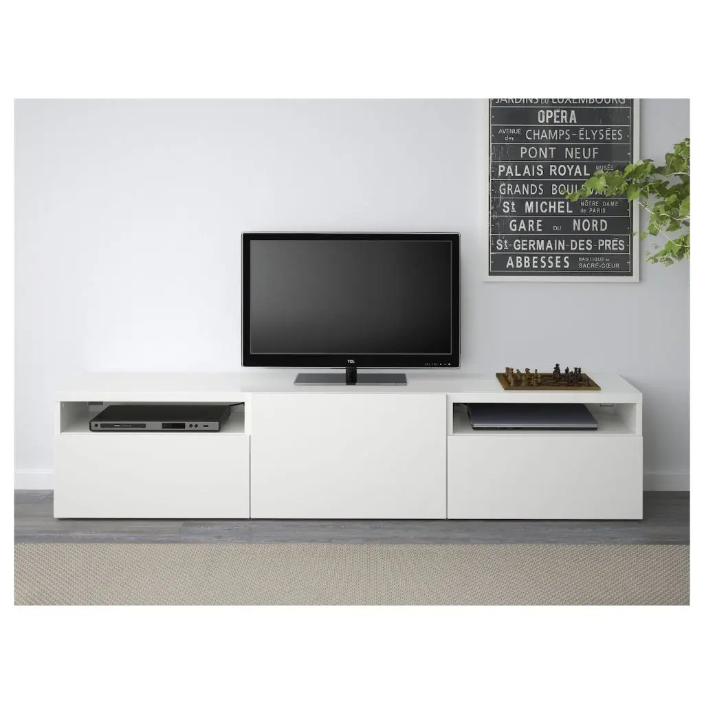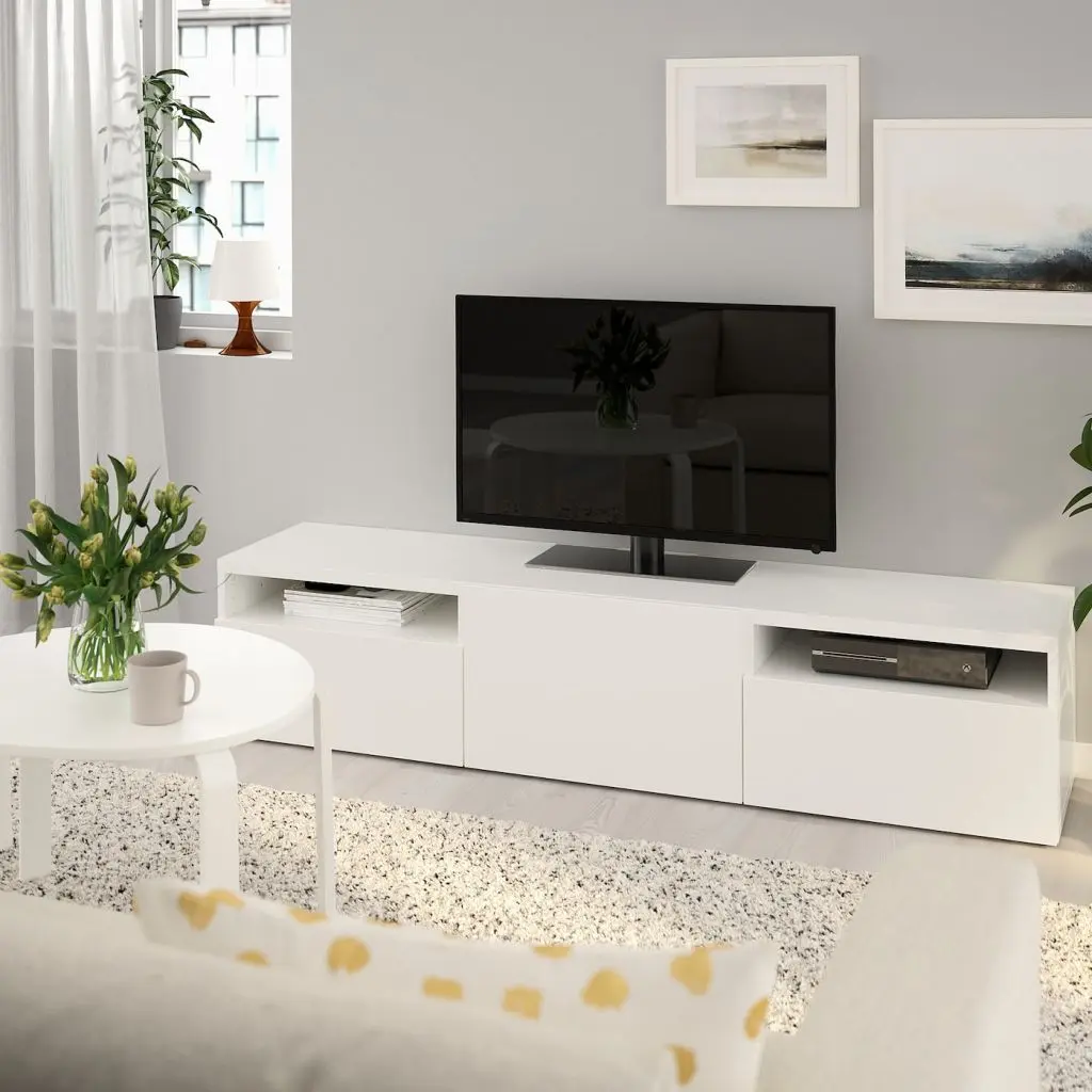 Благодаря доводчикам ящики закрываются плавно и бесшумно.Благодаря нескольким отверстиям на задней панели тумбы под ТВ провода от телевизора и других устройств всегда будут под рукой, но не на виду.Два ящика обеспечат порядок в хранении пультов, игровых приставок и других аксессуаров для ТВ.Специальное отверстие для проводов в верхней панели обеспечит удобное и компактное размещение проводов, даже если тумба закреплена на стене.Эту мебель необходимо крепить к стене с помощью прилагаемого стенного крепежа.Макс. нагрузка на верхнюю панель этой тумбы под ТВ: 50 кг.Для разных стен требуются различные крепежные приспособления. Подберите подходящие для ваших стен шурупы, дюбели, саморезы и т. п. (не прилагаются).Максимальная нагрузка на закрепленный на стене модуль зависит от материала стены.Внутренние элементы для организации хранения в модулях БЕСТО продаются отдельно.Если вы выберете функцию плавного закрывания, рекомендуем дополнить фасады ручками, чтобы открывать ящики/шкафы было удобнее.Дизайнер