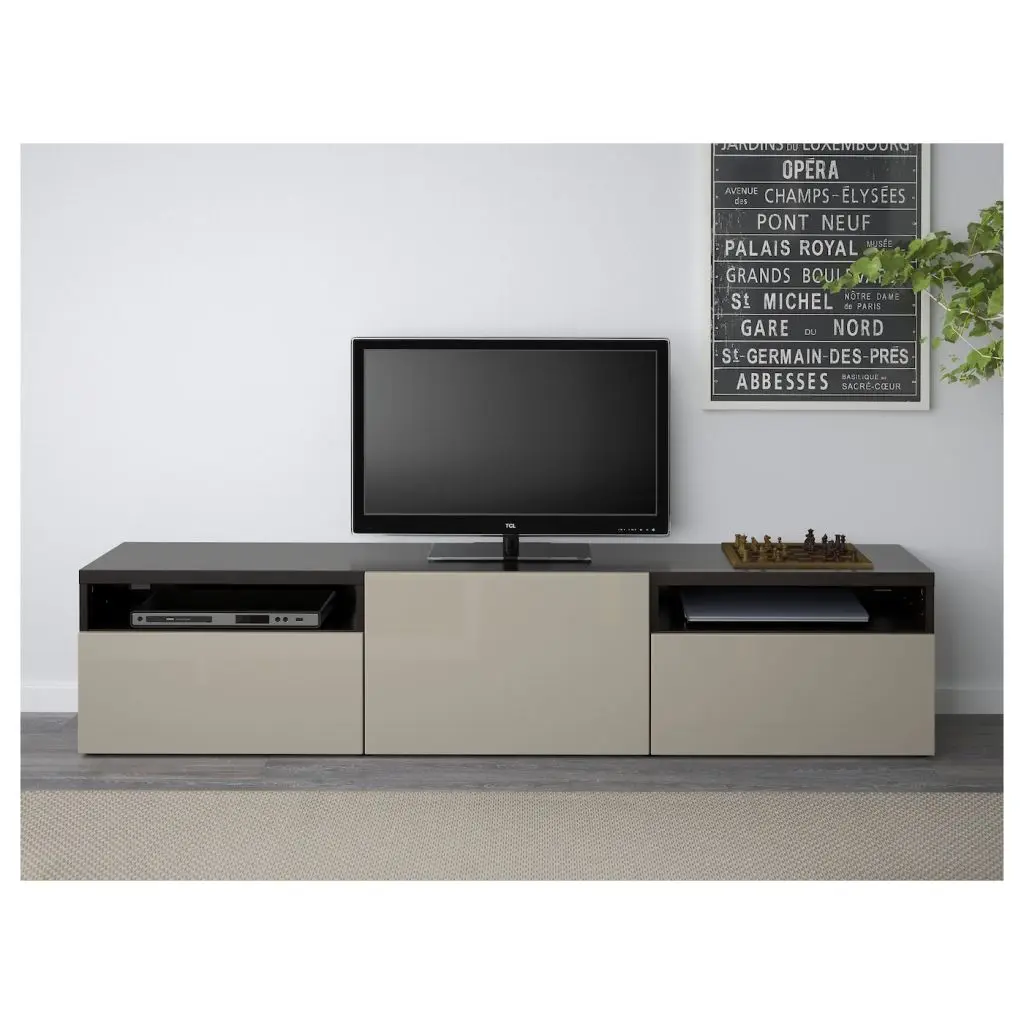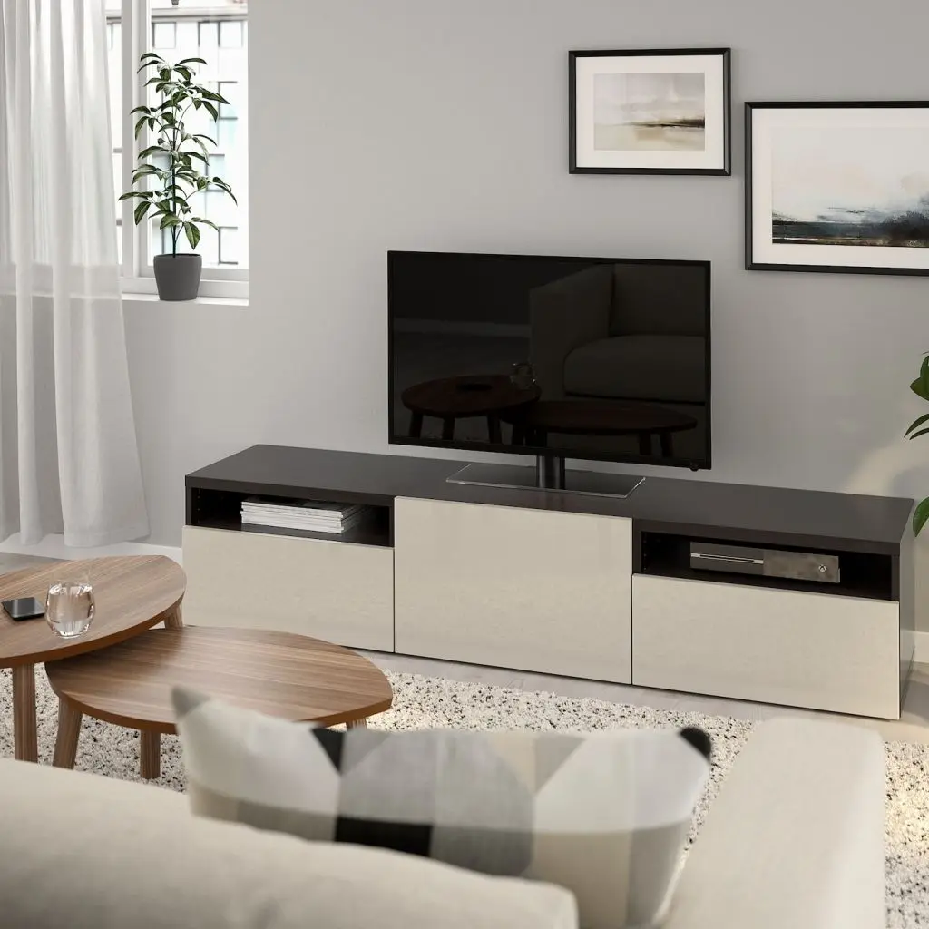 Благодаря доводчикам ящики закрываются плавно и бесшумно.Благодаря нескольким отверстиям на задней панели тумбы под ТВ провода от телевизора и других устройств всегда будут под рукой, но не на виду.Два ящика обеспечат порядок в хранении пультов, игровых приставок и других аксессуаров для ТВ.Специальное отверстие для проводов в верхней панели обеспечит удобное и компактное размещение проводов, даже если тумба закреплена на стене.Эту мебель необходимо крепить к стене с помощью прилагаемого стенного крепежа.Макс. нагрузка на верхнюю панель этой тумбы под ТВ: 50 кг.Для разных стен требуются различные крепежные приспособления. Подберите подходящие для ваших стен шурупы, дюбели, саморезы и т. п. (не прилагаются).Максимальная нагрузка на закрепленный на стене модуль зависит от материала стены.Внутренние элементы для организации хранения в модулях БЕСТО продаются отдельно.Если вы выберете функцию плавного закрывания, рекомендуем дополнить фасады ручками, чтобы открывать ящики/шкафы было удобнее.Дизайнер