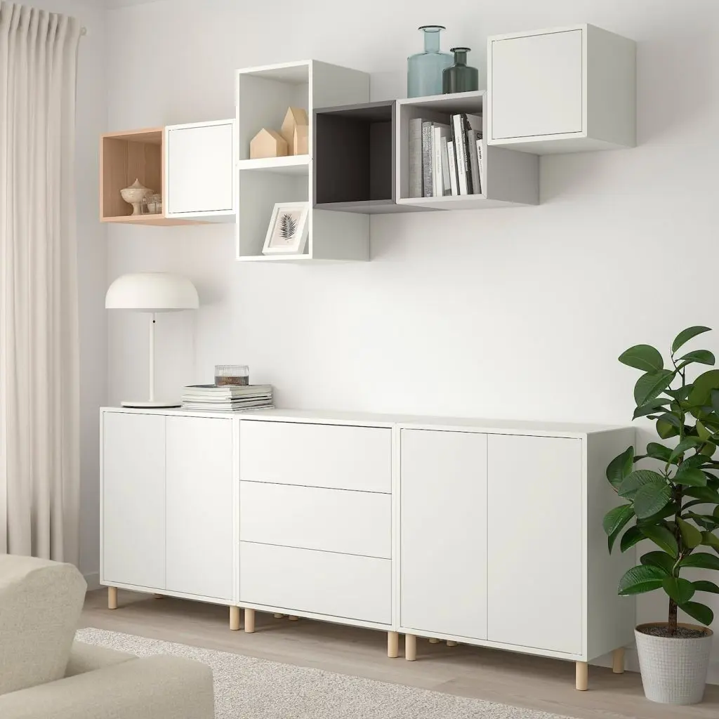 Комбинируйте открытое и закрытое хранение в зависимости от потребностей.Благодаря интегрированному нажимному механизму ящики и дверцы открываются легким нажатием.2 съемные полки позволяют адаптировать пространство в соответствии с потребностями хранения, одна несъемная полка обеспечивает устойчивость.Накладные шины ЭКЕТ для фиксации к стене прилагаются.Эту мебель необходимо крепить к стене с помощью прилагаемого стенного крепежа.Для разных стен требуются различные крепежные приспособления. Подберите подходящие для ваших стен шурупы, дюбели, саморезы и т. п. (не прилагаются).Максимальная нагрузка на горизонтальную поверхность: 15 кг.Дизайнер