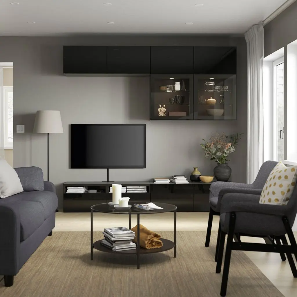 Благодаря нескольким отверстиям на задней панели тумбы под ТВ провода от телевизора и других устройств всегда будут под рукой, но не на виду.Специальное отверстие в верхней панели обеспечит удобное и компактное размещение проводов.Благодаря интегрированному нажимному механизму ящики и дверцы открываются легким нажатием.Ящики со встроенным нажимным механизмом открываются легким нажатием.Настенные шкафчики позволяют эффективно использовать пространство над телевизором.Ящики обеспечат более упорядоченное хранение ваших вещей. А полки за дверцами предоставят еще больше места.Съемные полки позволяют регулировать пространство.Организуйте и оптимизируйте систему для хранения БЕСТО, используя подходящие коробки и вставки.Эту мебель необходимо крепить к стене с помощью прилагаемого стенного крепежа.Максимальная нагрузка на закрепленный на стене каркас зависит от материала стены.Для разных стен требуются различные крепежные приспособления. Подберите подходящие для ваших стен шурупы, дюбели, саморезы и т. п. (не прилагаются).Для функционирования нажимного механизма необходимо пространство между каркасом и фронтальной панелью ящика, чтобы ящик открывался нажатием. Небольшой зазор необходим для обеспечения этой функции и не является недостатком товара.